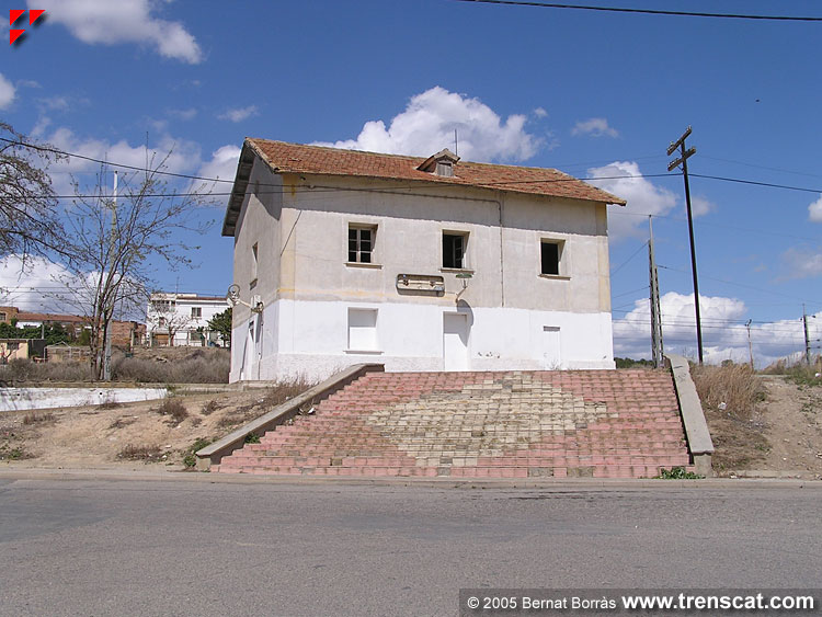desviada. L'edifici de viatgers es troba a l'esquerra de les vies