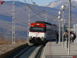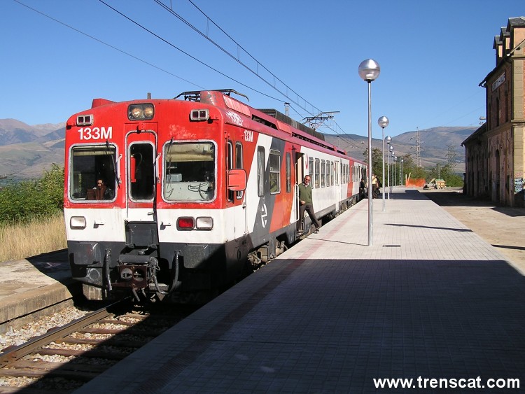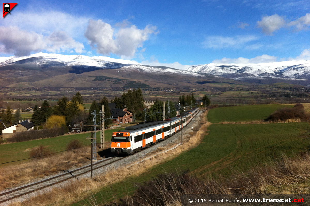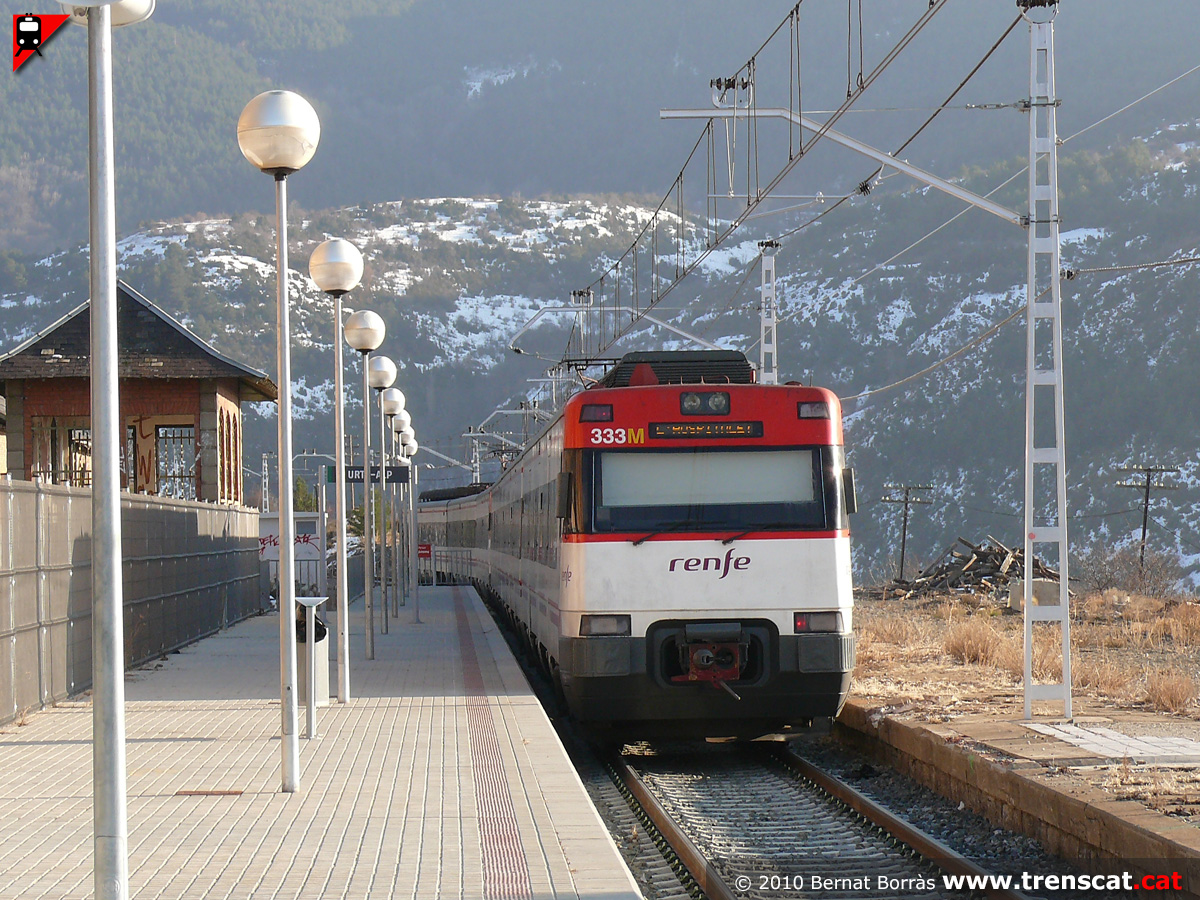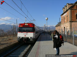 El tren de la línia R3 sortint cap a la Molina, Ribes de Freser, Ripoll,