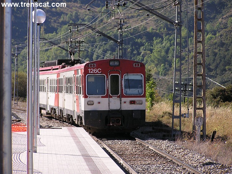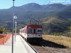 Tren de dos cotxes sortint cap a Ripoll (setembre 2004) |
