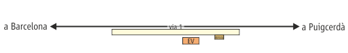 la dreta (via 2) i dues desviades a l’esquerra (vies 3 i