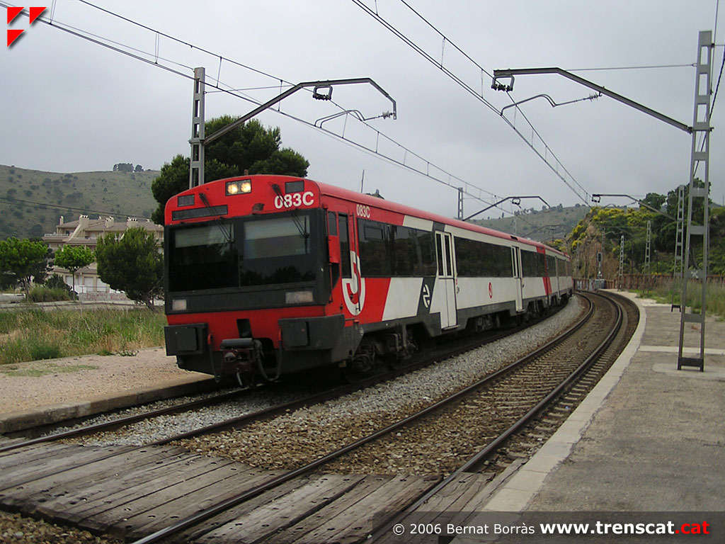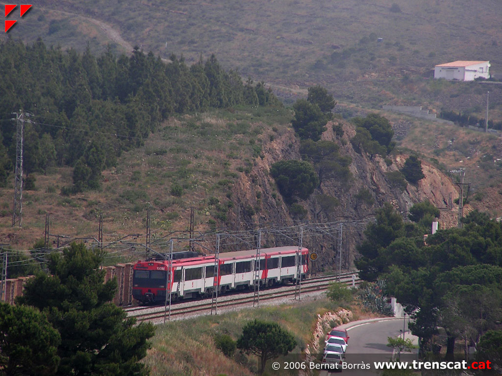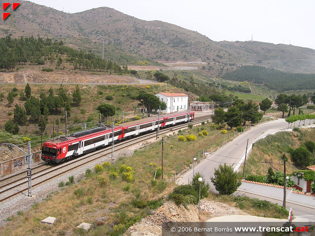 Unitat 440 en servei regional Barcelona-Cervera entrant a Colera (maig 2006) |