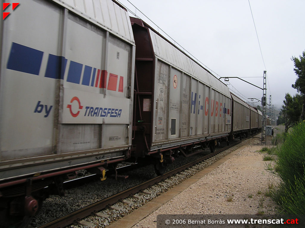 La 279-002 remolca un tren de vagons tancats cap a Portbou (maig 2006) |