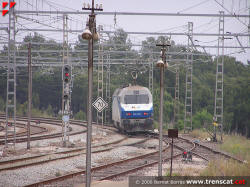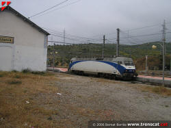 Enfilant la corba de sortida de Llançà cap a Portbou (agost 2013) |