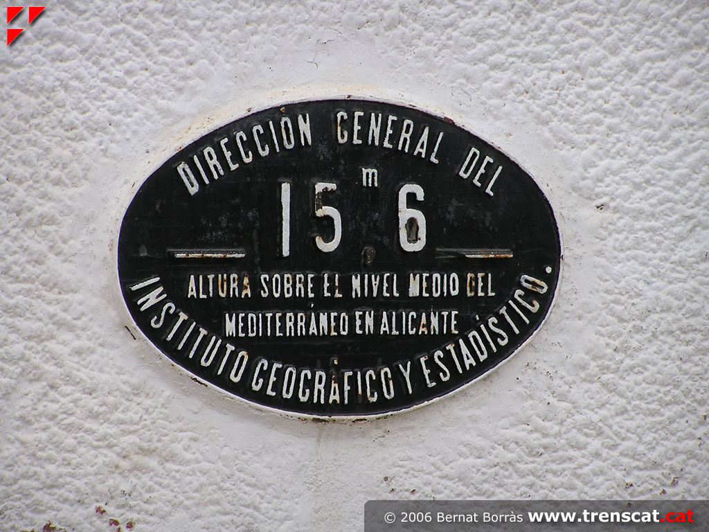 Placa amb l'altitud de l'estació respecte el nivell del mar (maig 2006) |