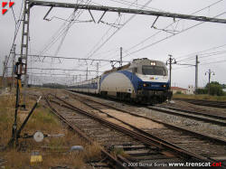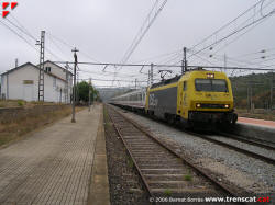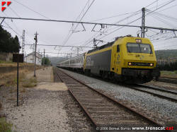 La 252-069 és l'encarregada de remolcar el Talgo internacional cap a