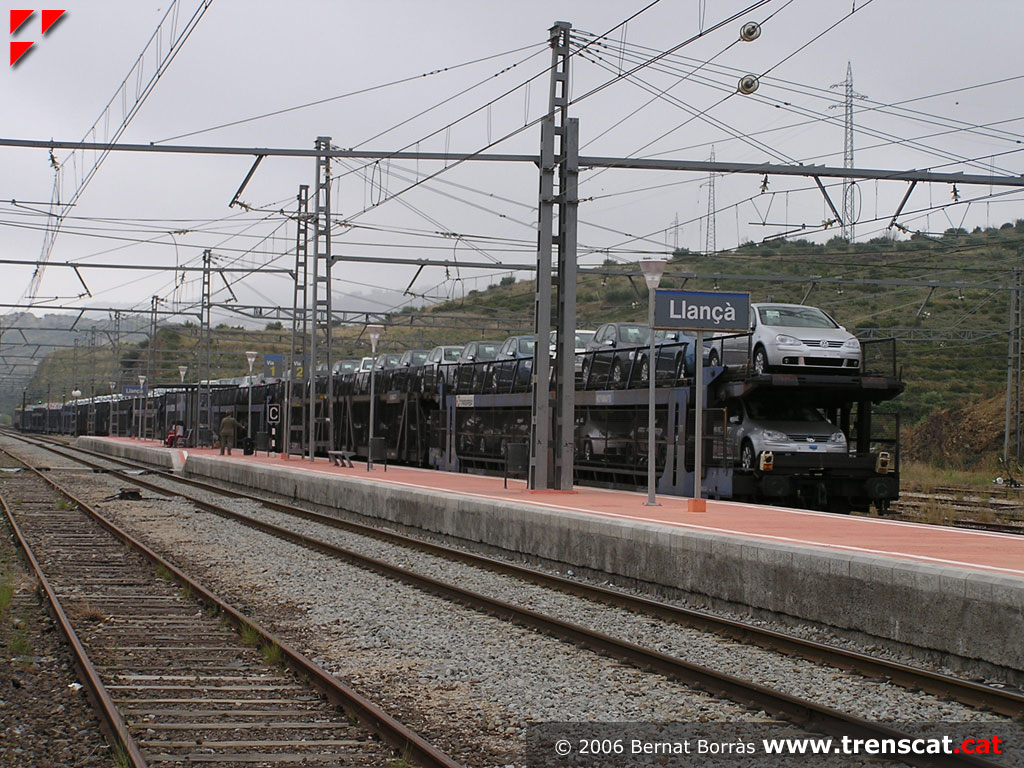 Tren porta-cotxes circulant direcció Girona encapçalat per la