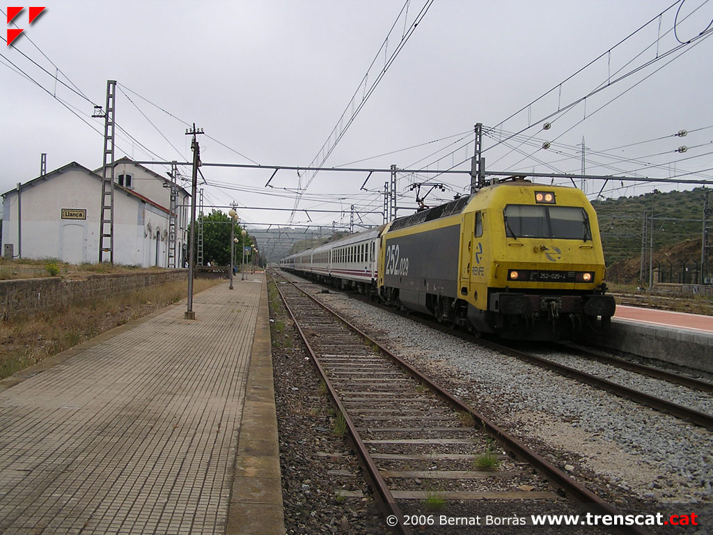 La 252-029 encara en colors "taxi" remolca l'Estrella Costa Brava (maig