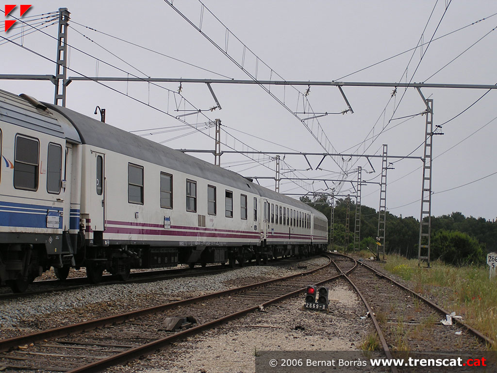 Detall d'un dels cotxes de la composició del tren nocturn (maig 2006) |