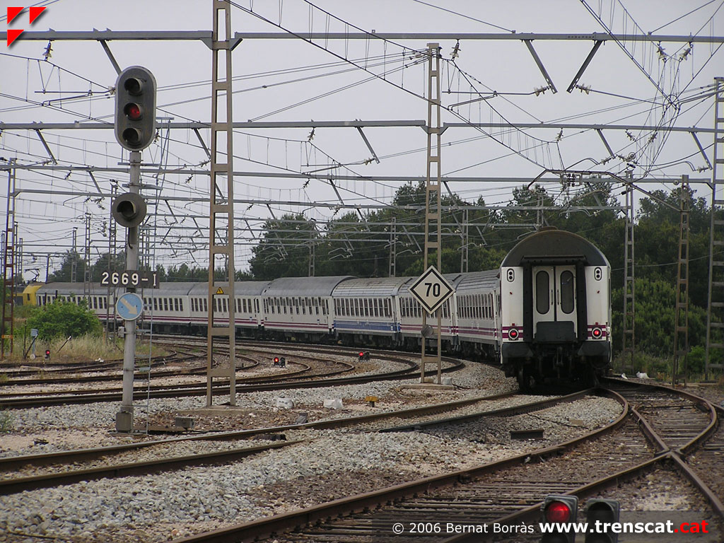 El tren a punt de fer parada a la via 1 (maig 2006) |