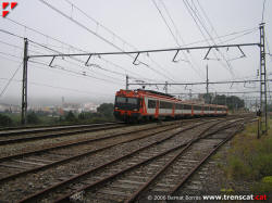 La 440-157 procedent de Portbou fa la seva entrada a Llançà (maig 2006) |