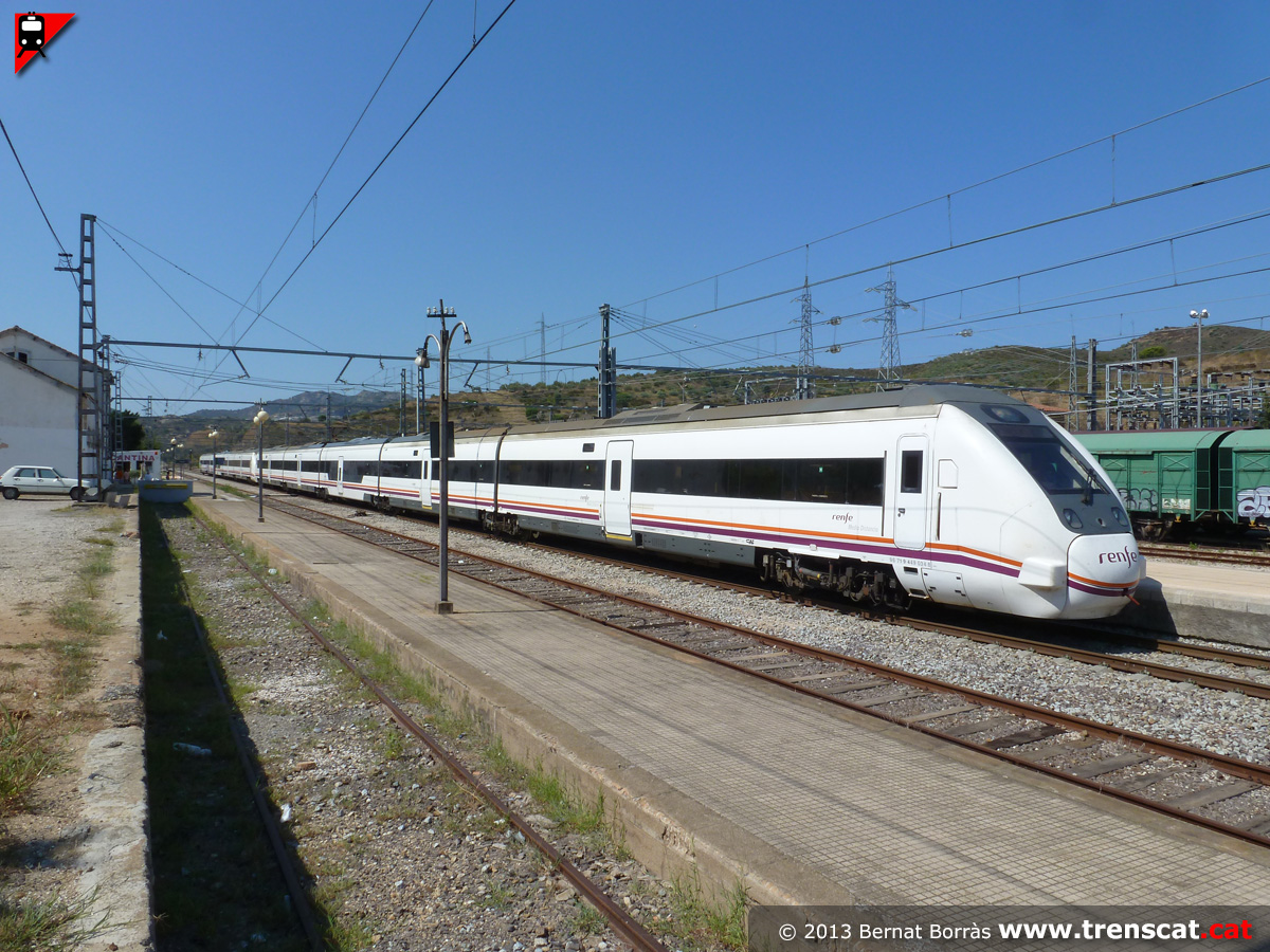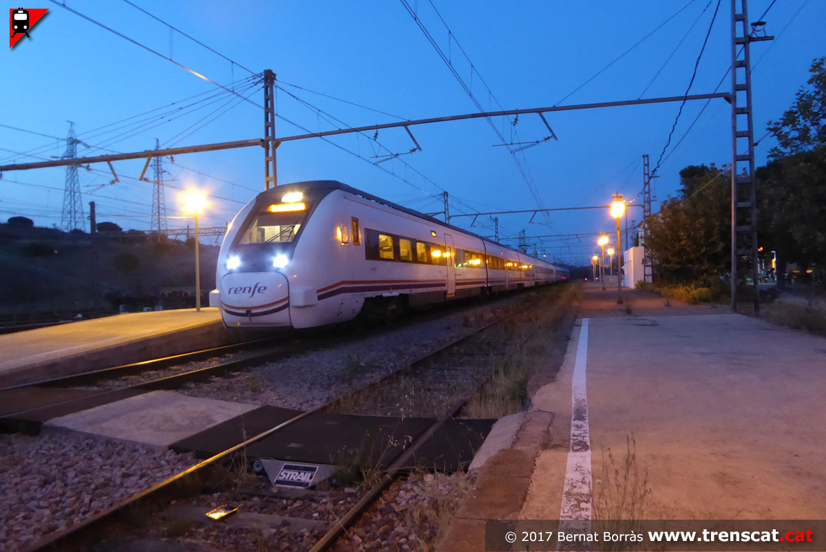 Doble composició d'unitats sèrie 449 amb un servei a Portbou fent parada