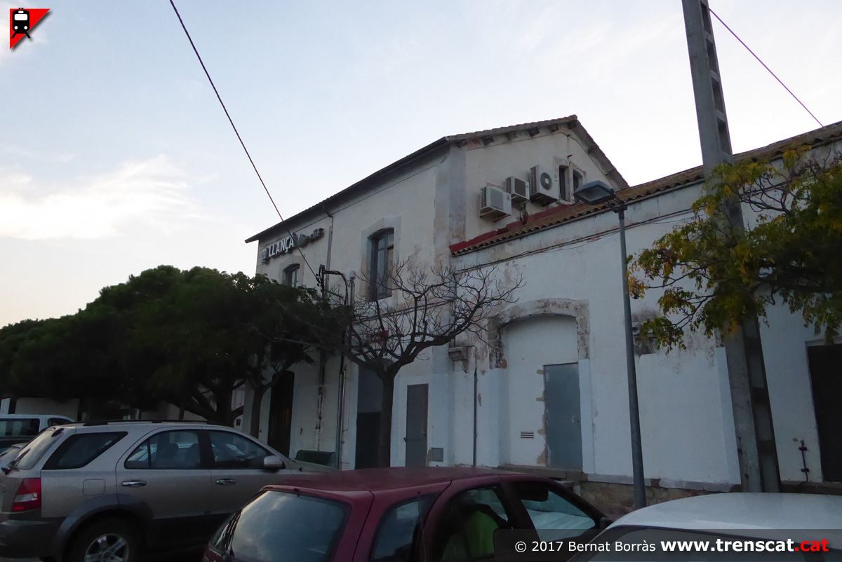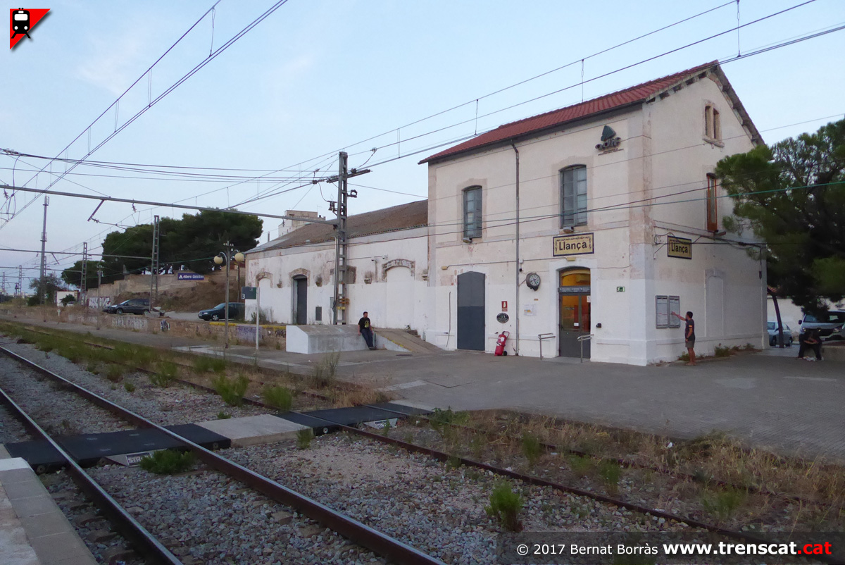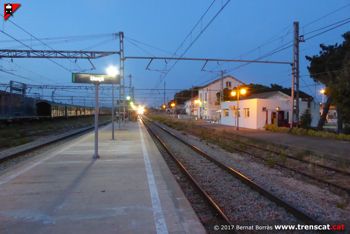 Vista ja nocturna de l'estació de Llançà (agost 2017) |