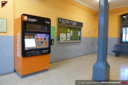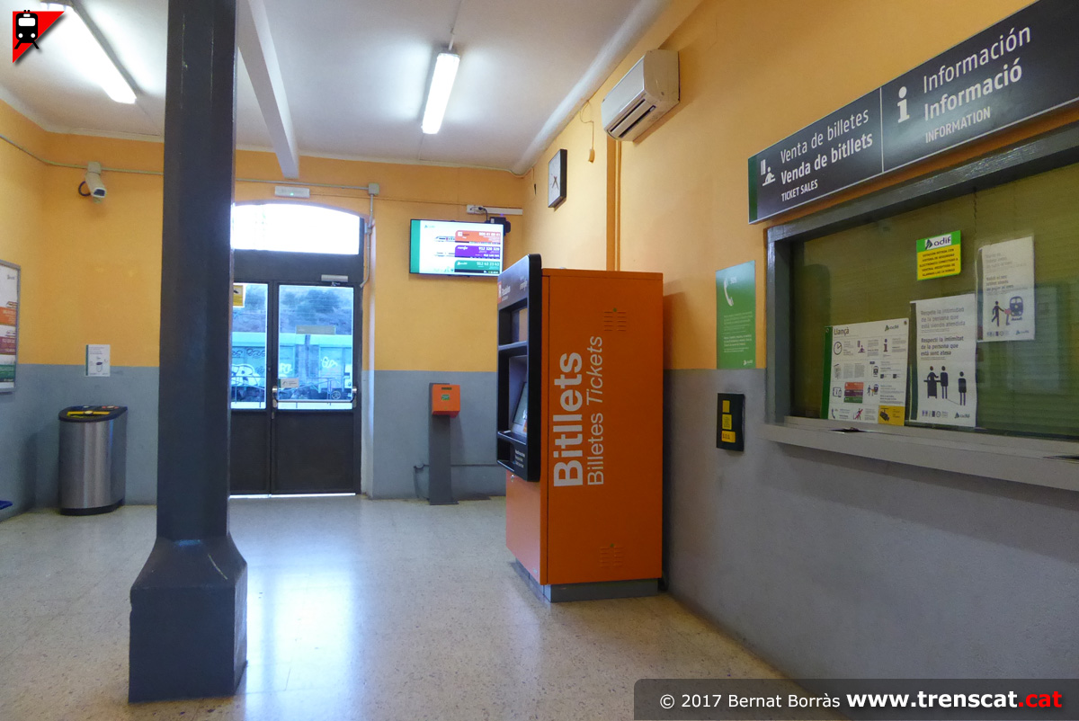 Interior de l'edifici de viatgers, amb la màquina de venda automàtica de