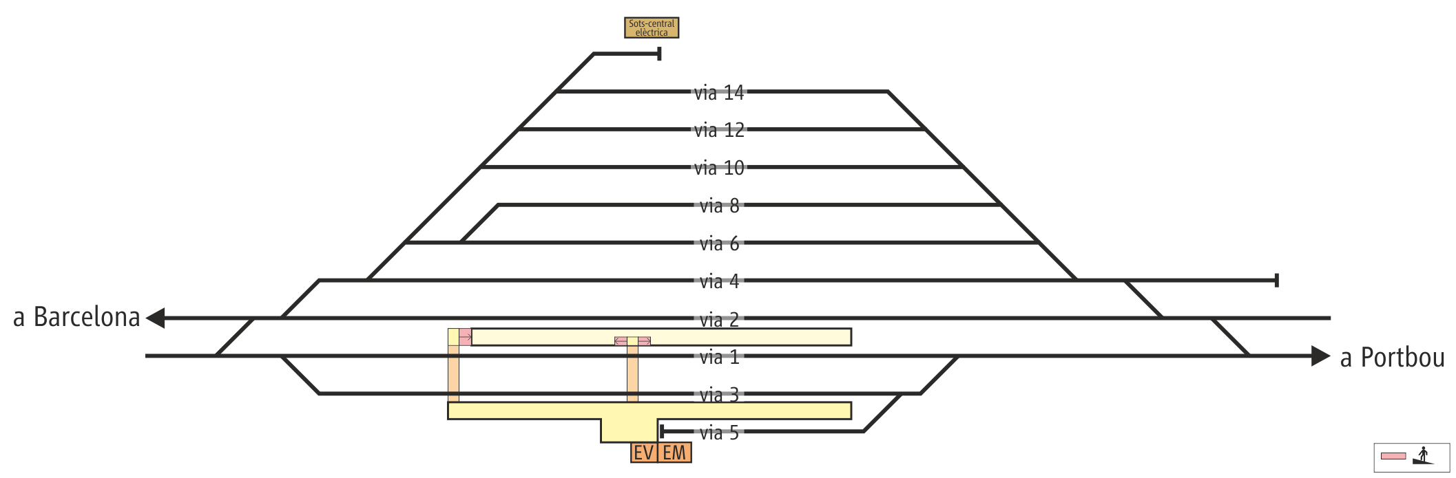 generals (vies 1 i 2), una desviada a la dreta (via 3) i