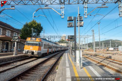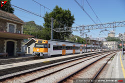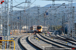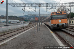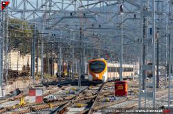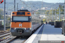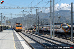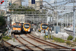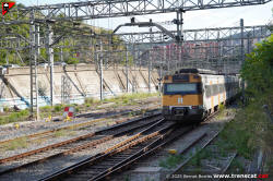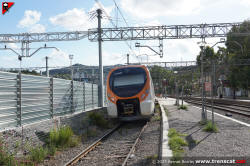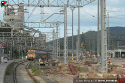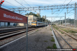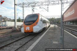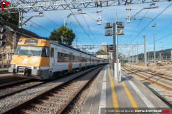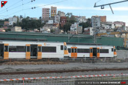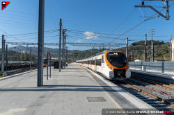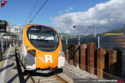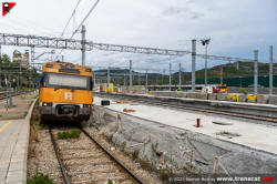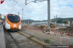 | Civia sèrie 465 a Montcada Bifurcació, amb vies reduïdes per les obres de modificació de la seva disposició (octubre 2024) |