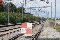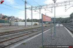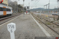 | Vies costat Barcelona de Montcada Bifurcació, amb senyal de parada absoluta en un dels punts de connexió amb les noves vies de l'estació (setembre 2025) |