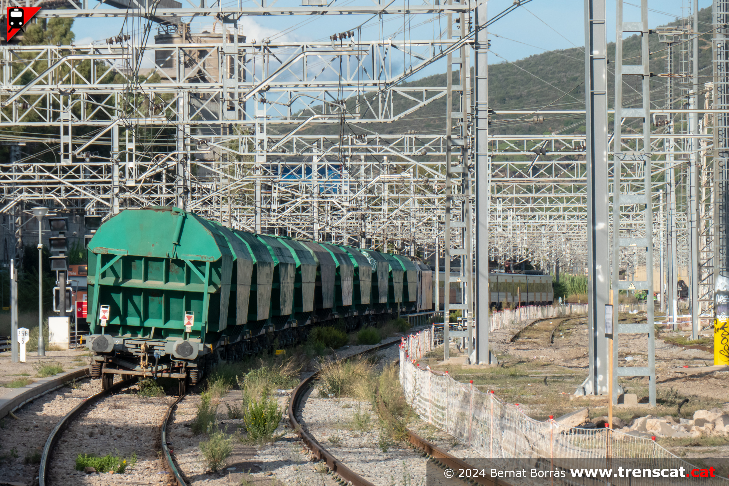 | Cua del tren de mercaderies, que segueix trajecte directament cap al Vallès (octubre 2024) |