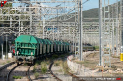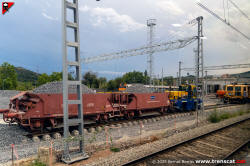 Material de via i obres amb vagons tremuja per a balast treballant a les obres de transformació de l'estació de Montcada Bifurcació (juliol 2025) |