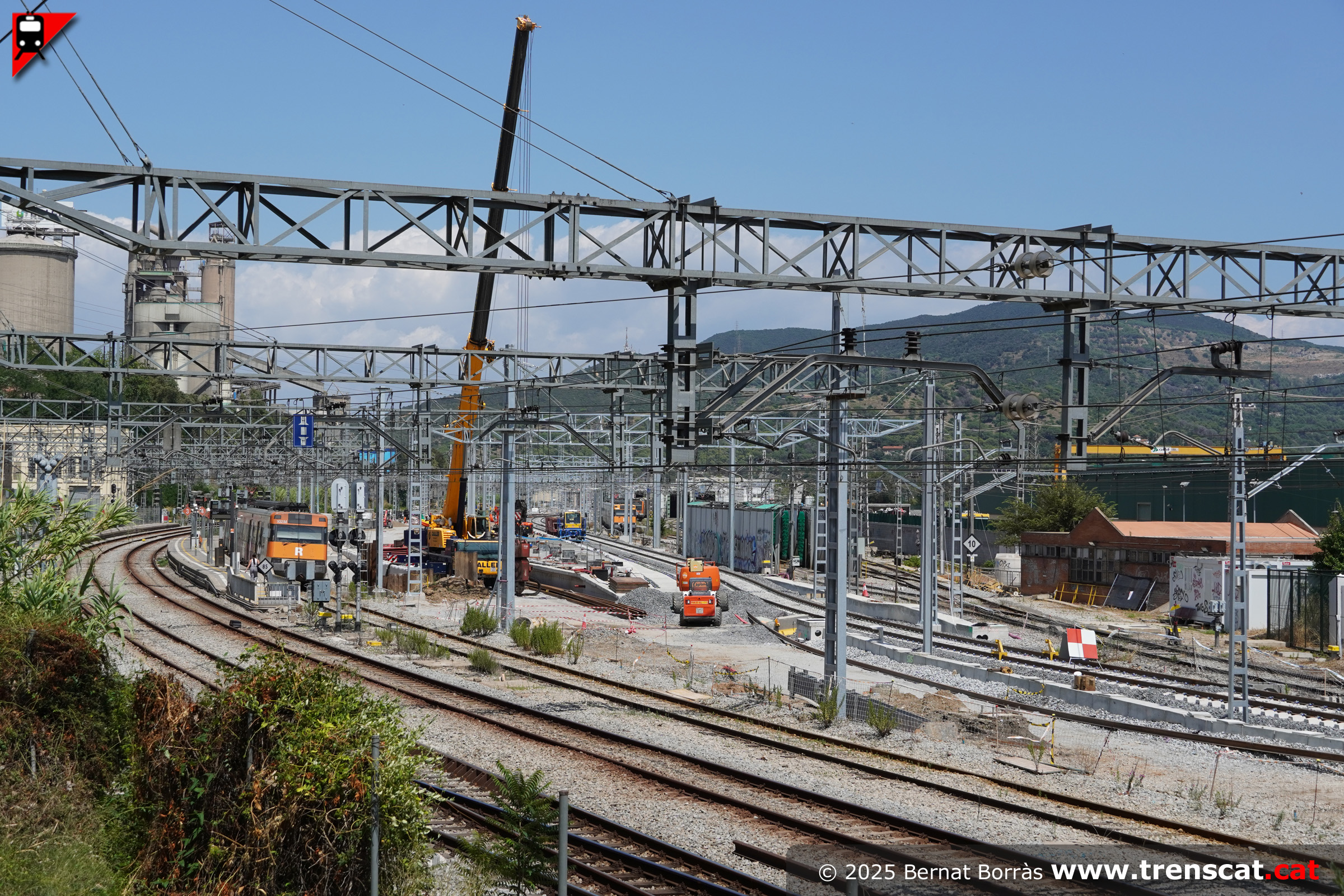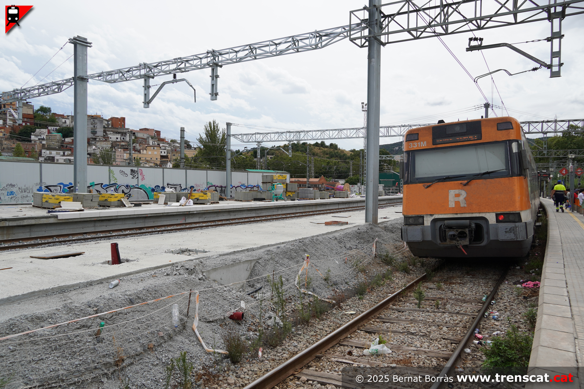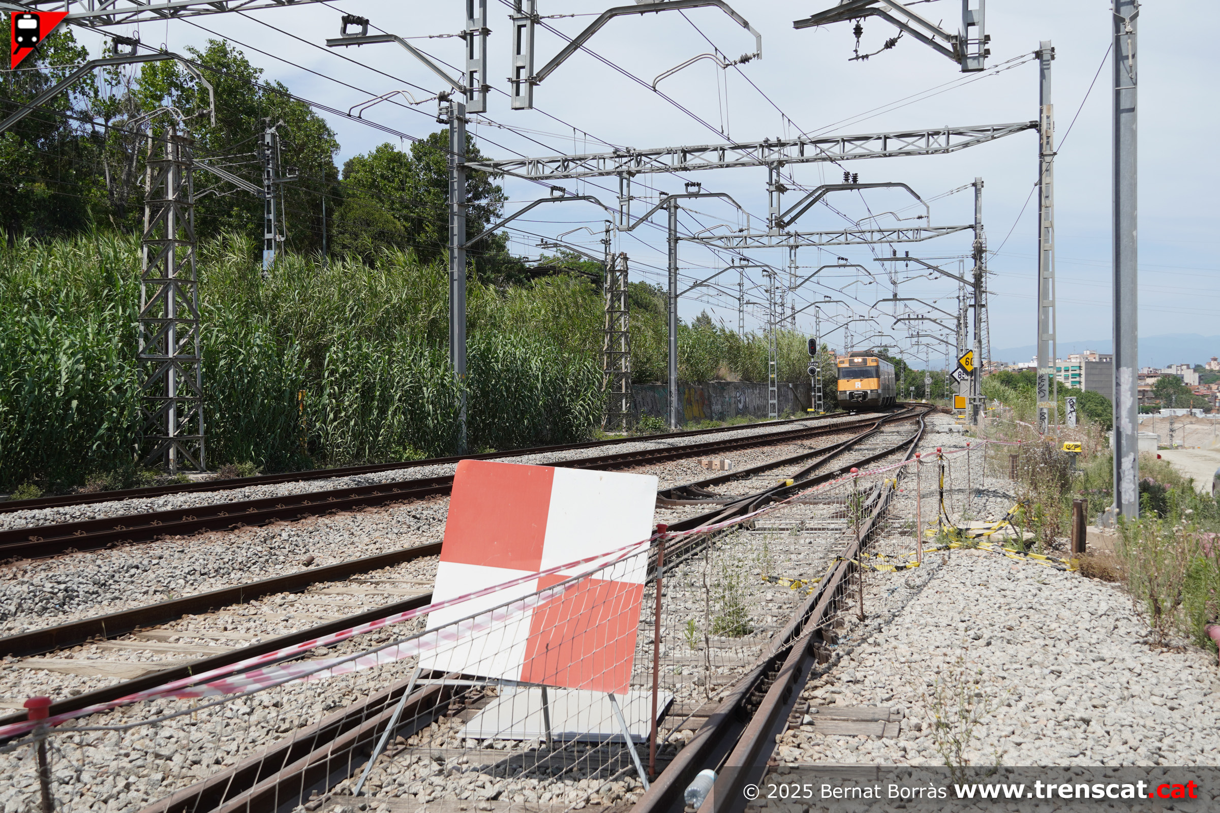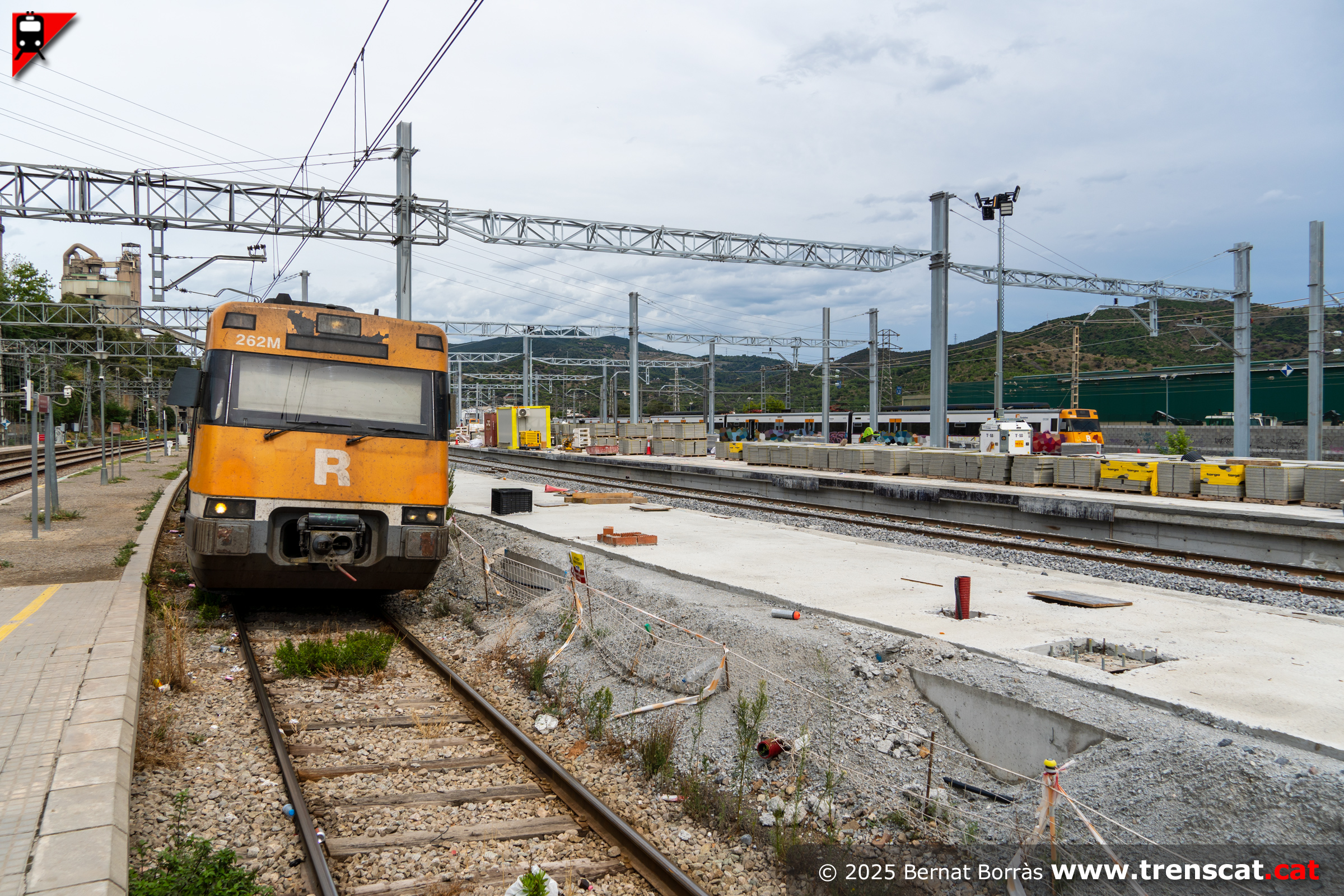| Unitat 447.131 a l'actual viva 4 de Montcada Bifurcació amb l'andana per a la nova via 4 a mig fer (setembre 2025) |