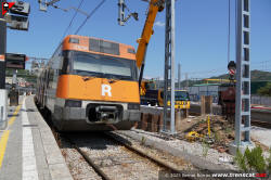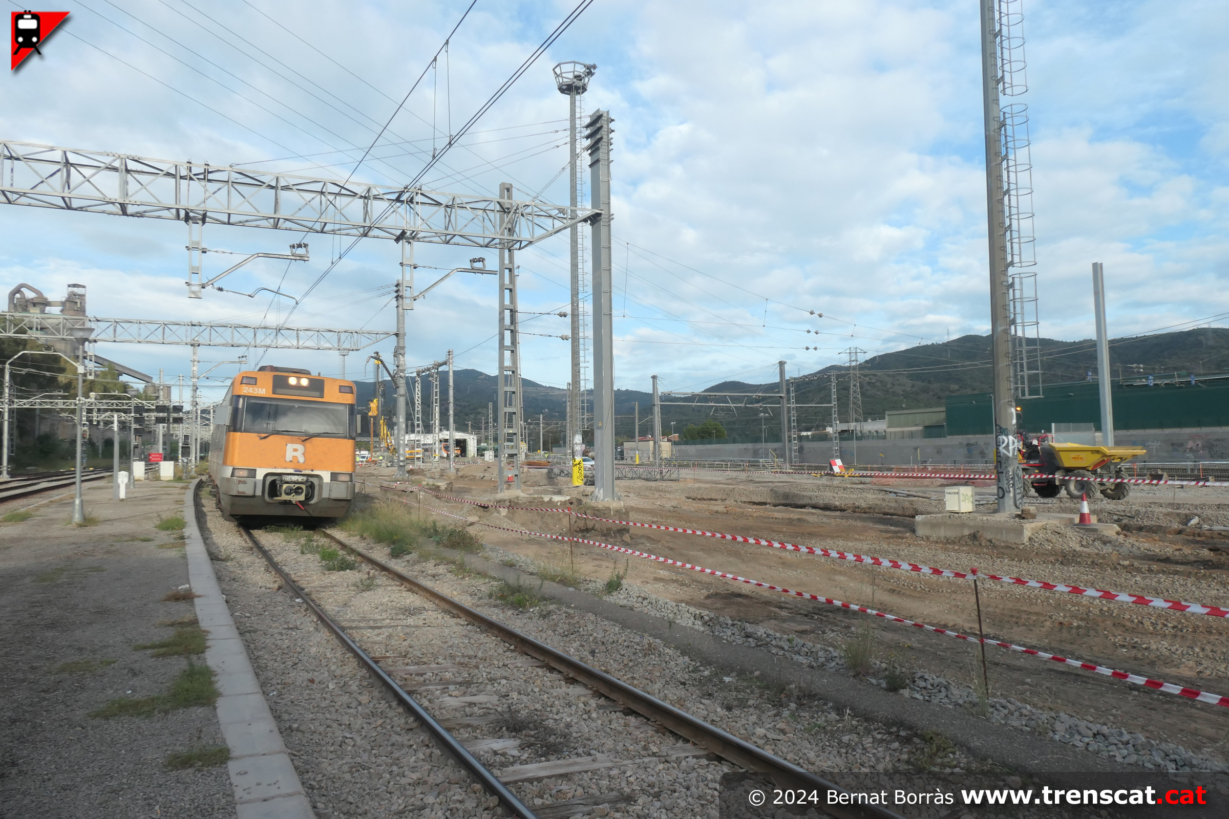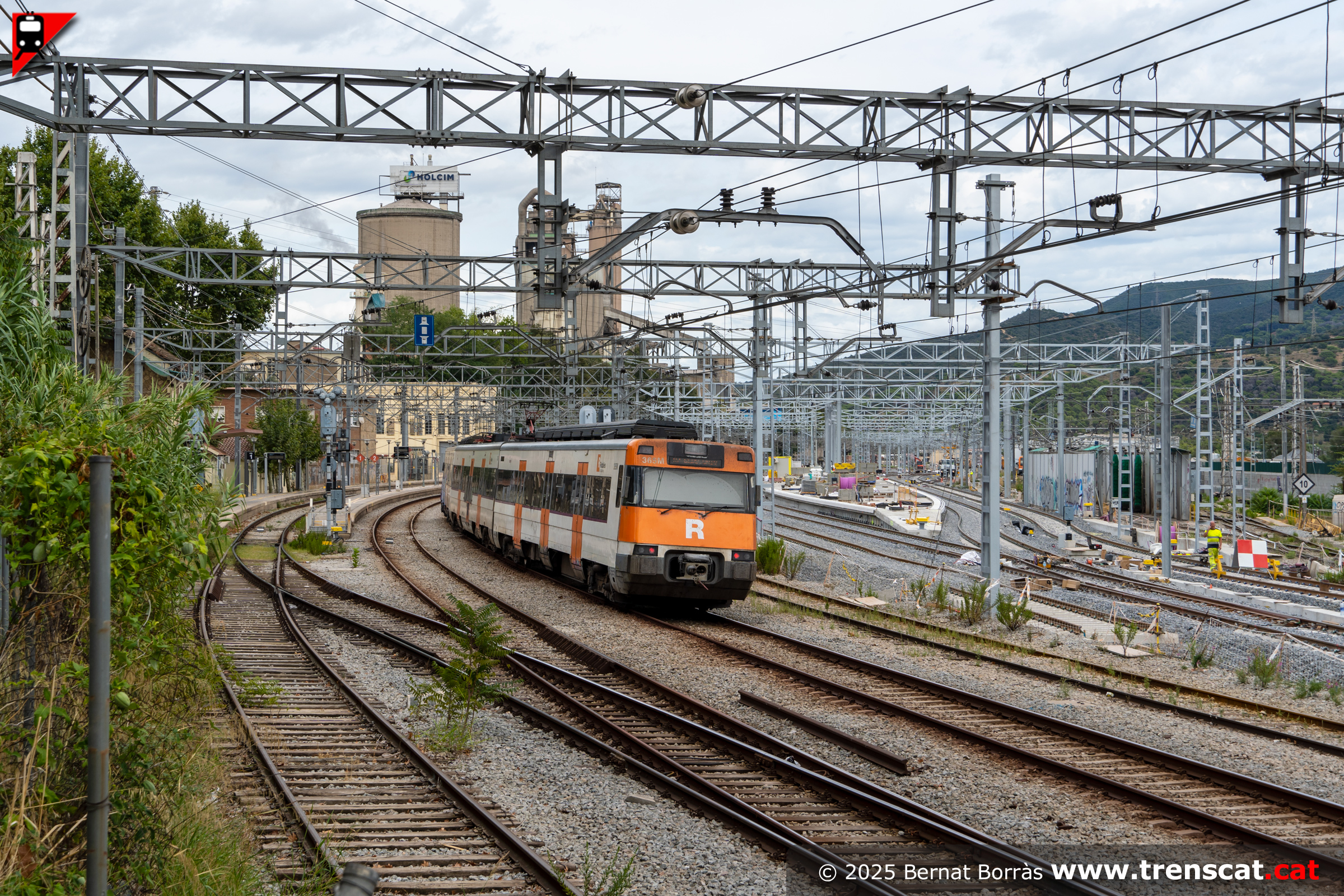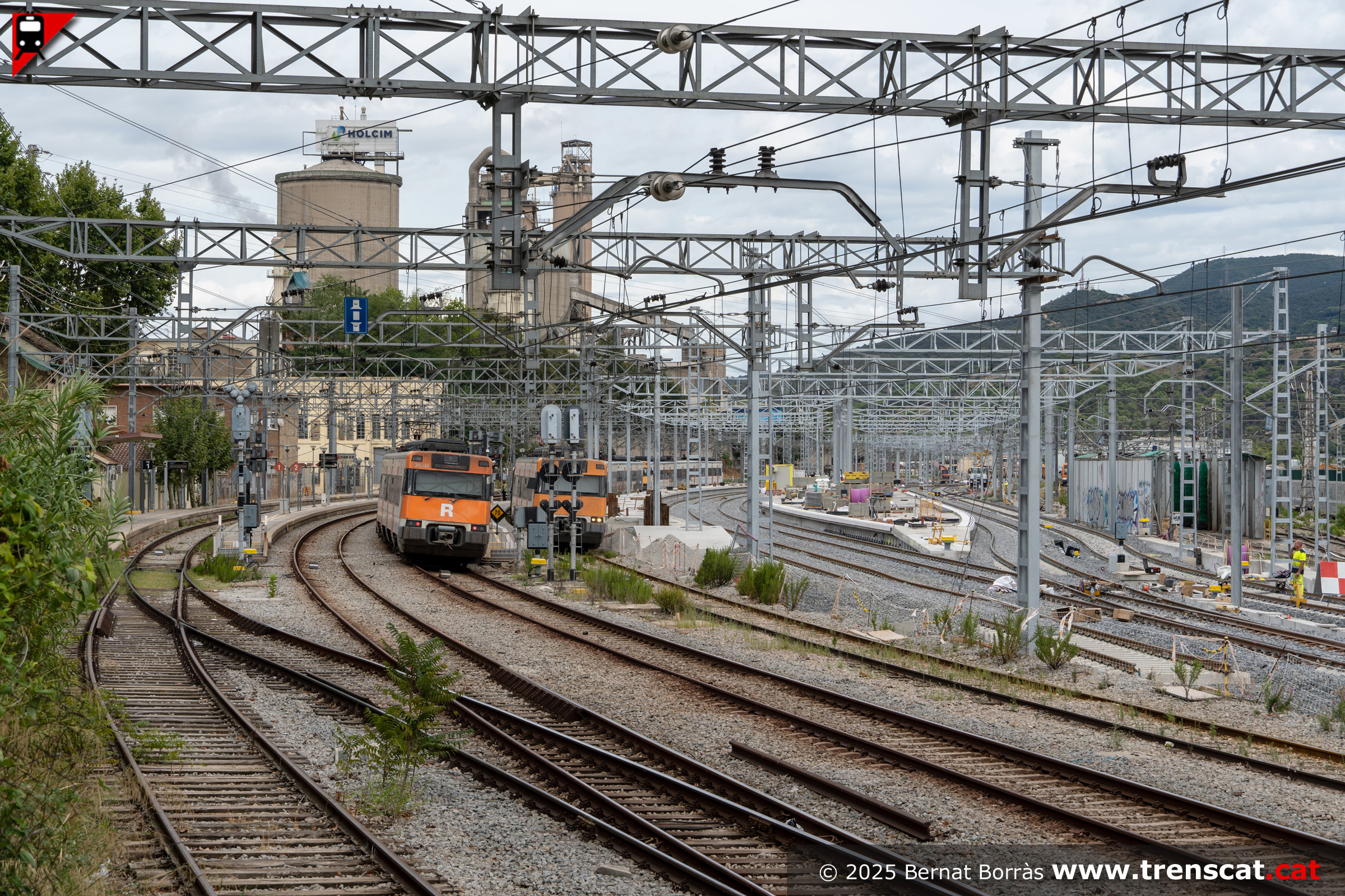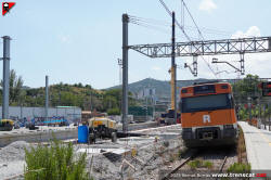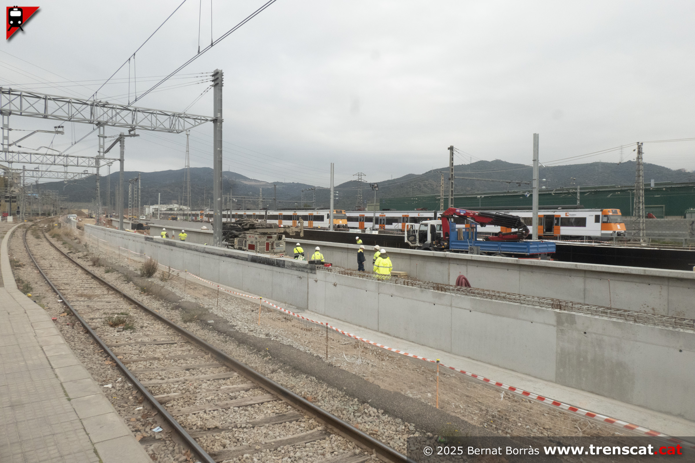 | Unitat 447.131 a l'actual viva 4 de Montcada Bifurcació amb l'andana per a la nova via 4 a mig fer (setembre 2025) |