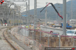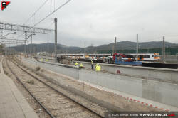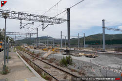 | Obres des de la via 4, amb la construcció d'una de les noves andanes (gener 2025) |
