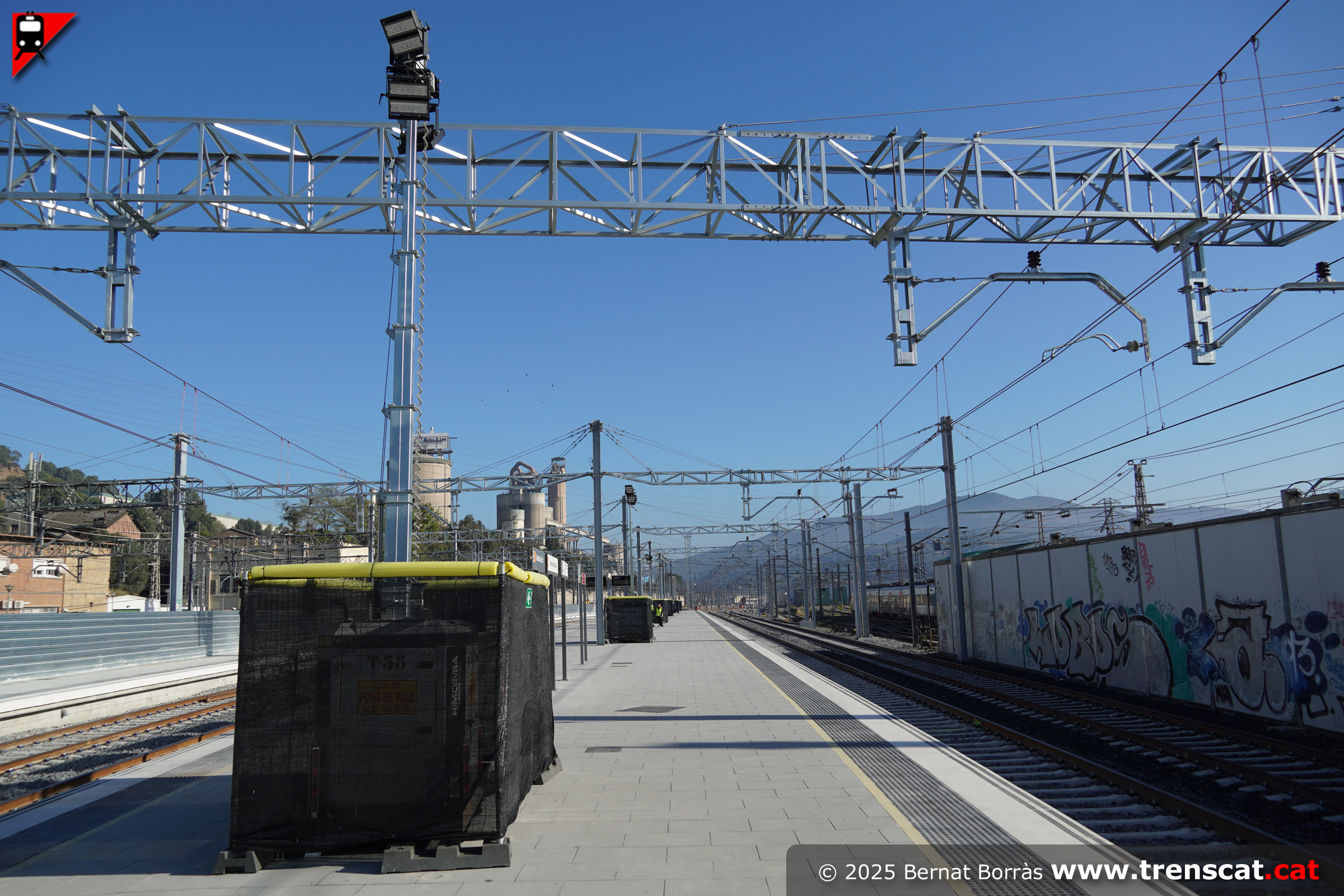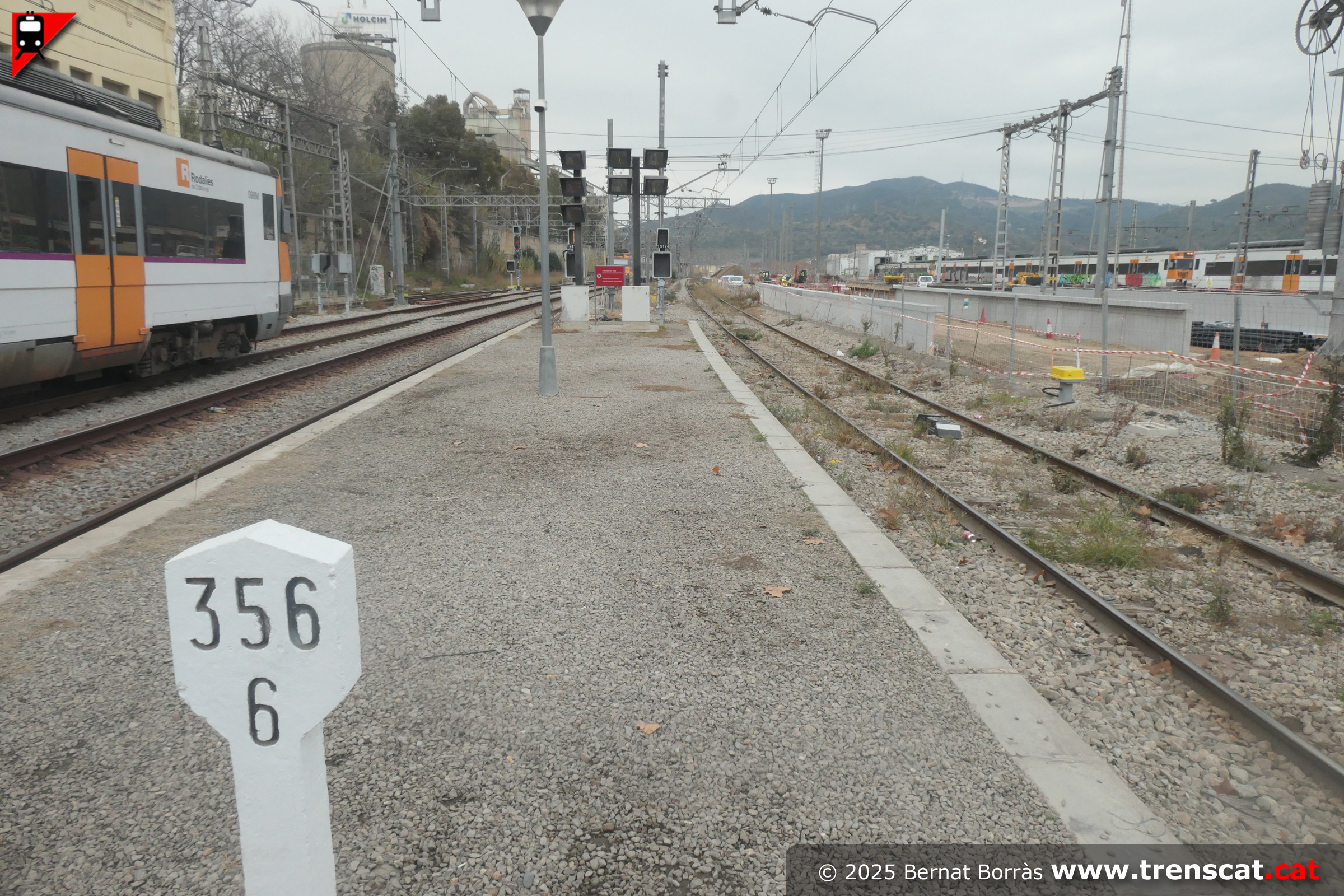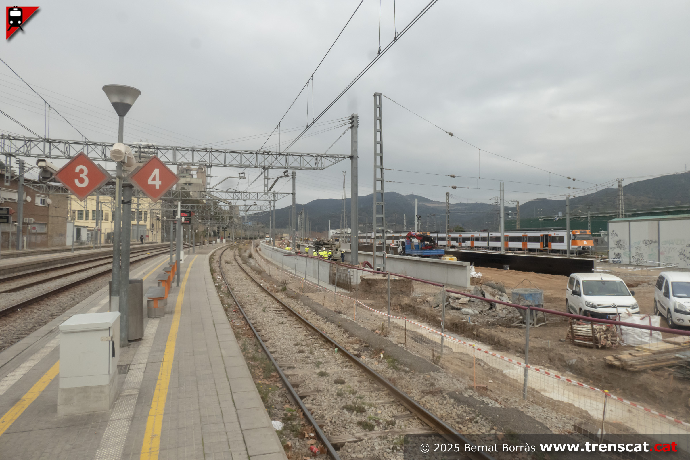 | Unitat Civia i andana de les vies 3-4 actuals de l'estació montcadenca (setembre 2025) |