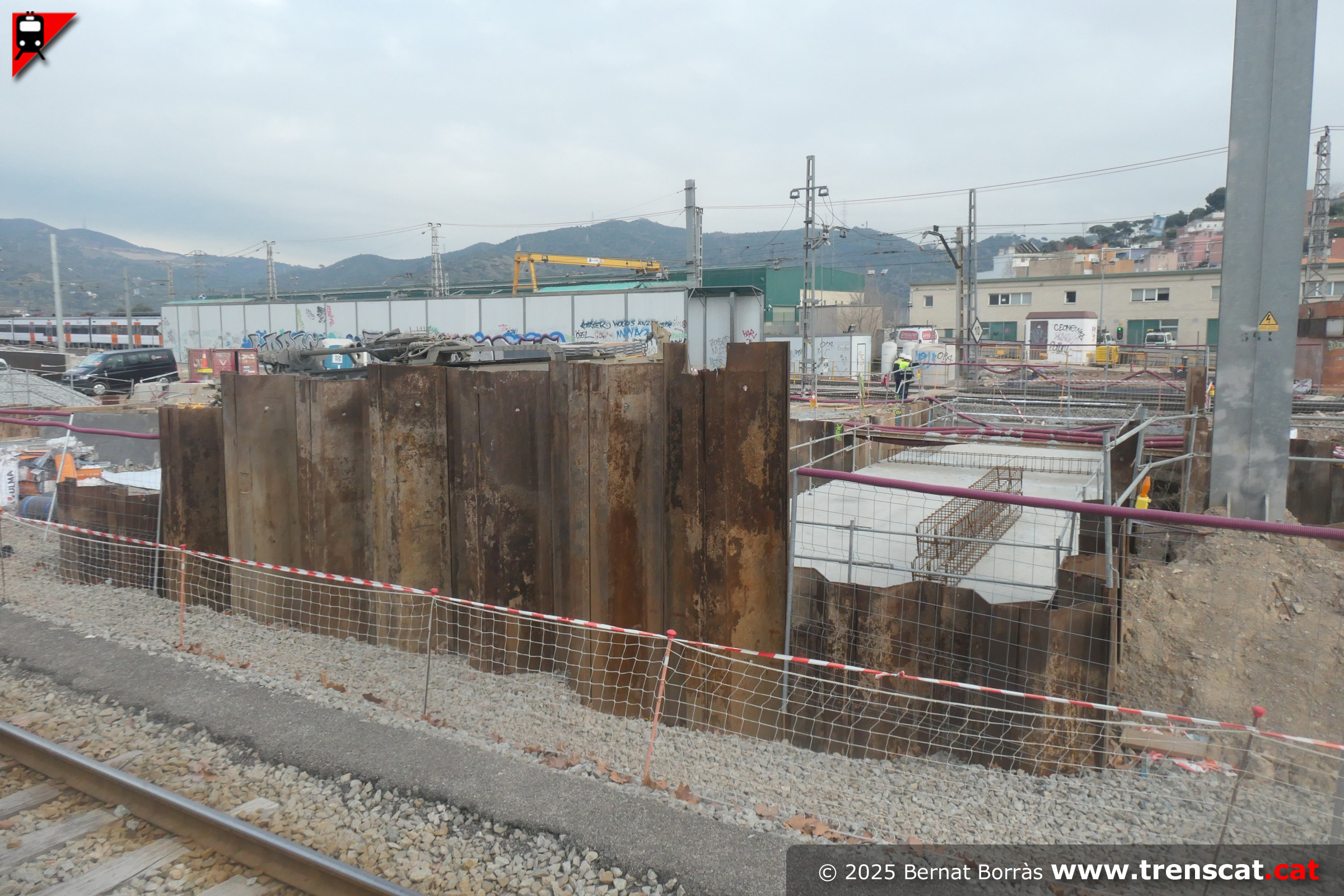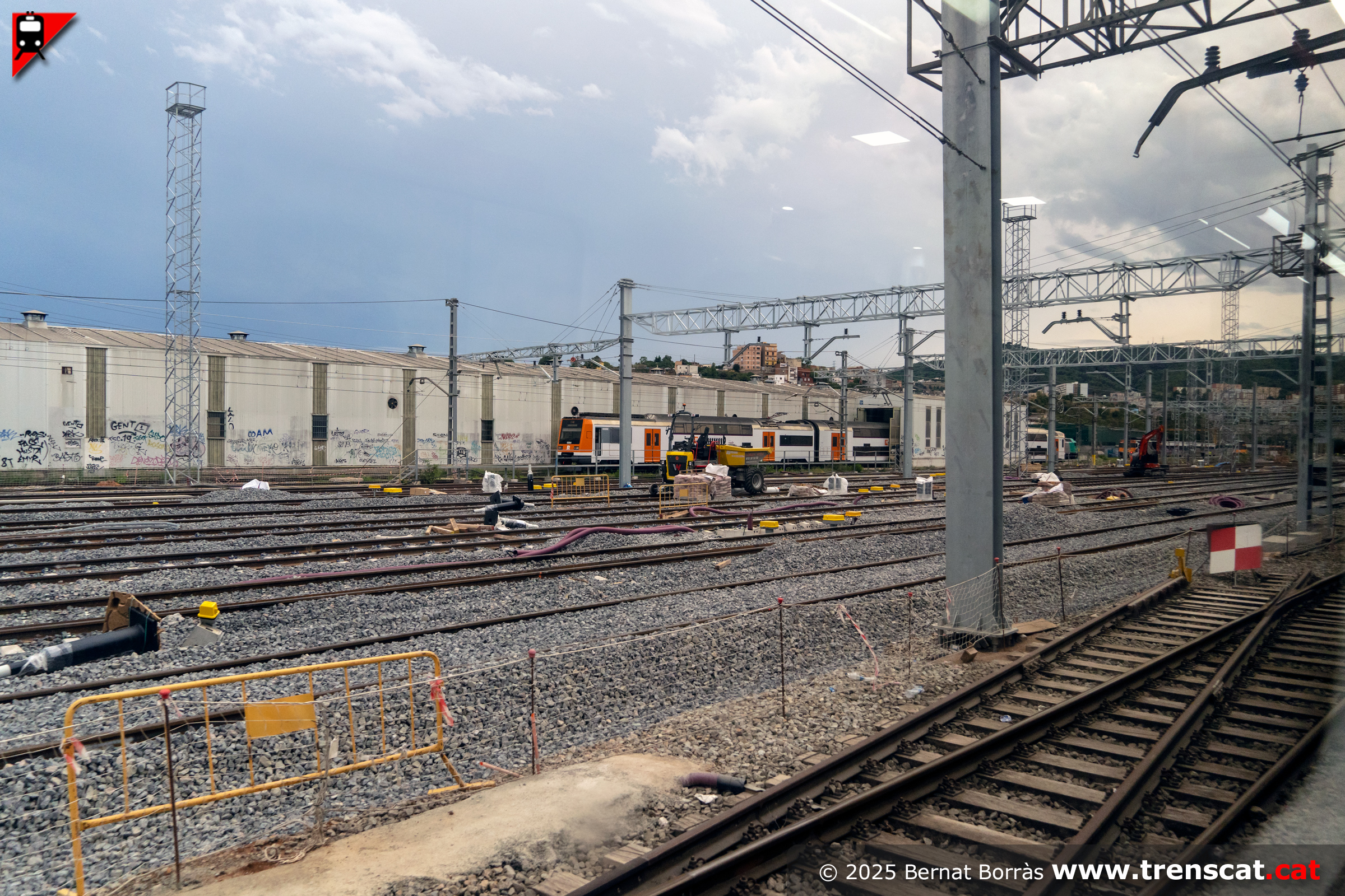Vista de les vies dels tallers en obres des de l'avinguda de la Unitat (juny 2025) |