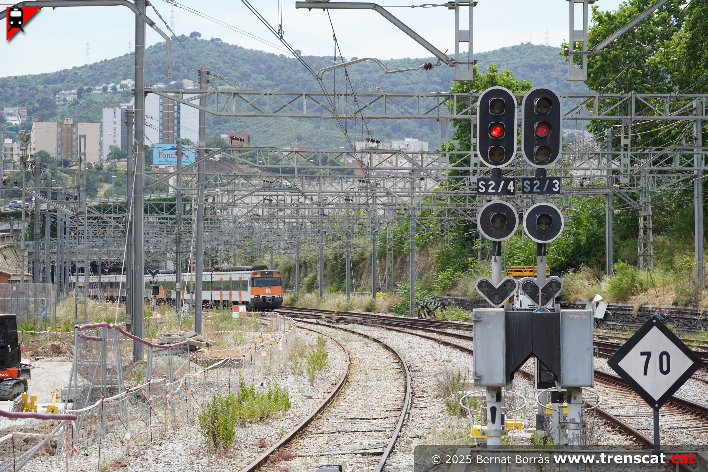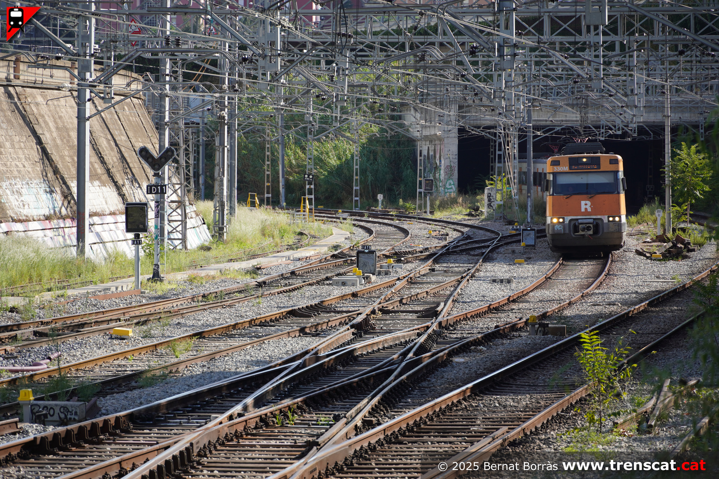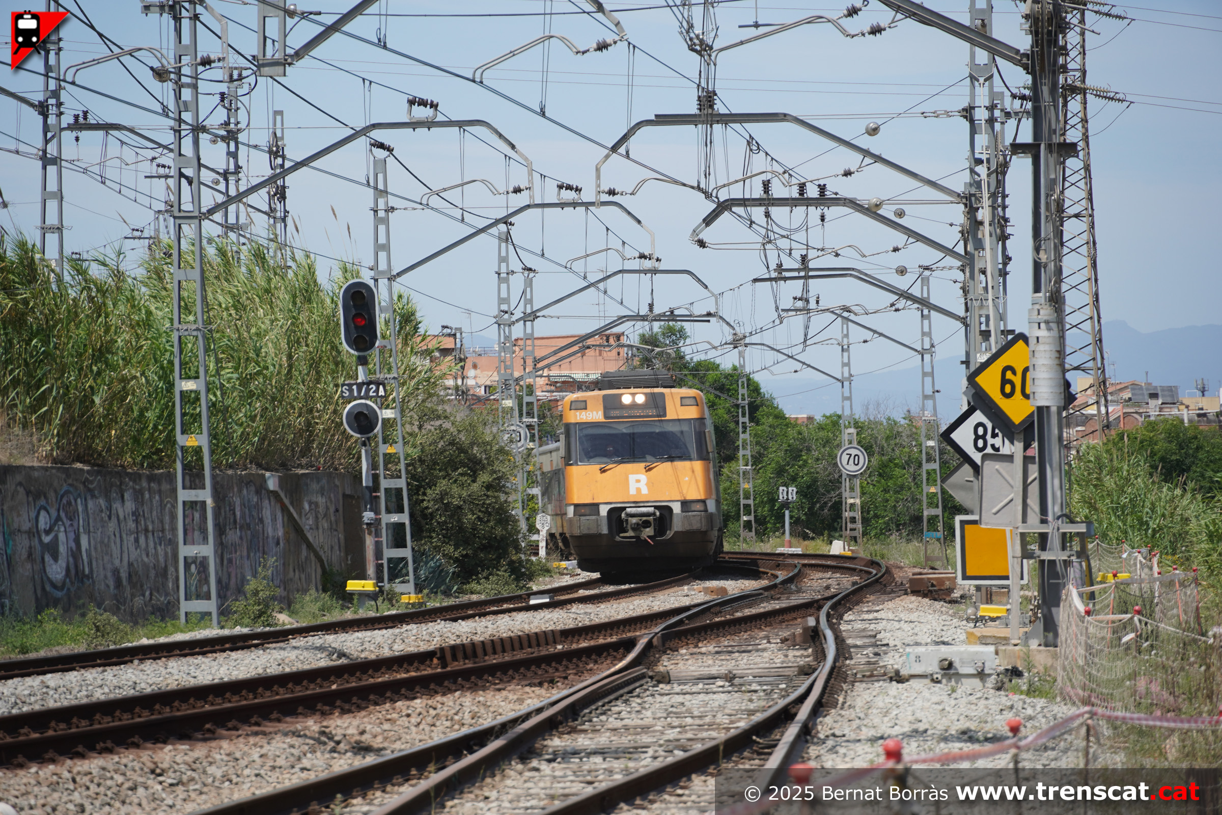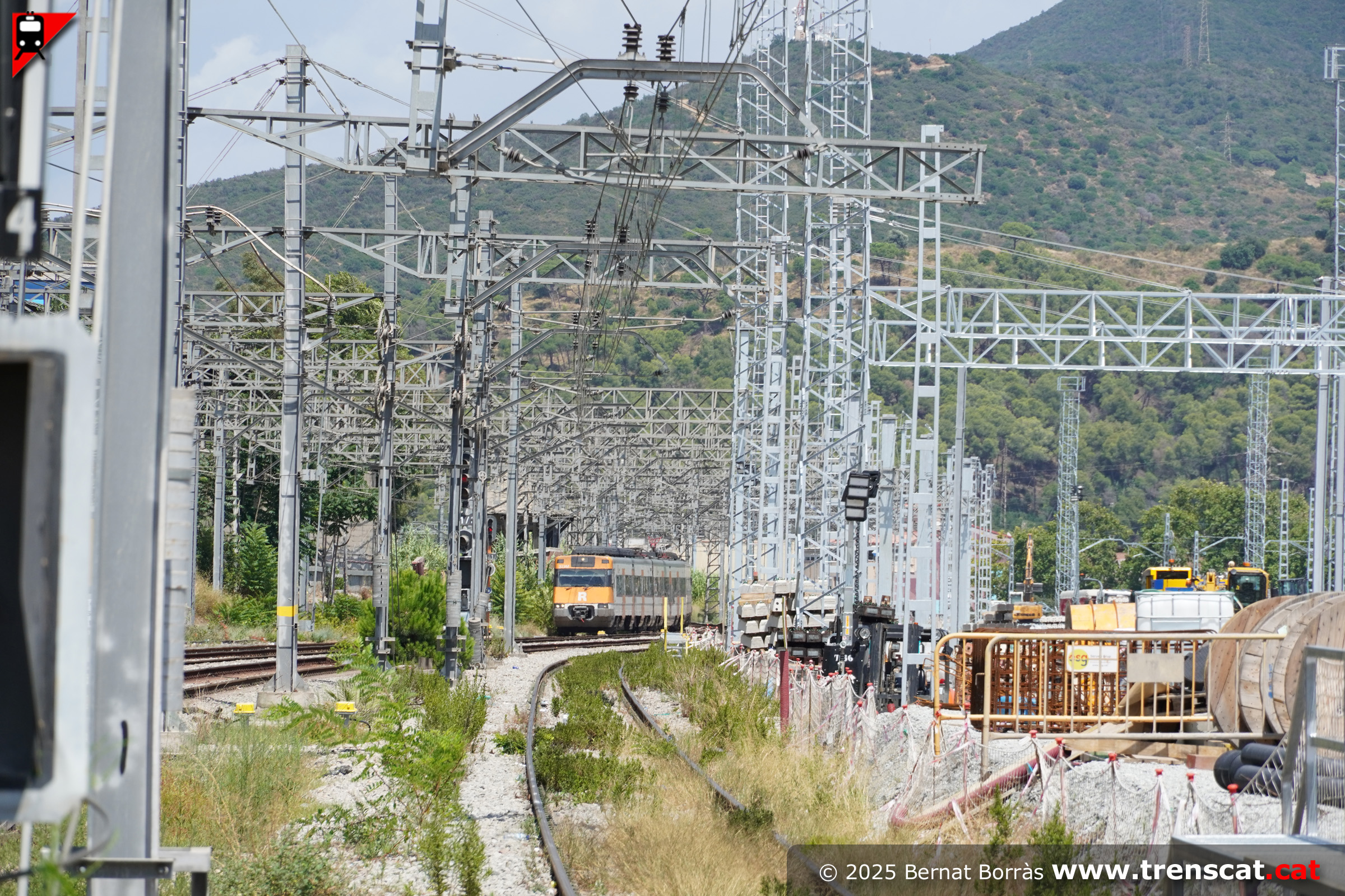La 447-071 entra a Montcada Bifurcació per la via 1 des del costat Barcelona (juliol 2025) |
