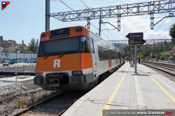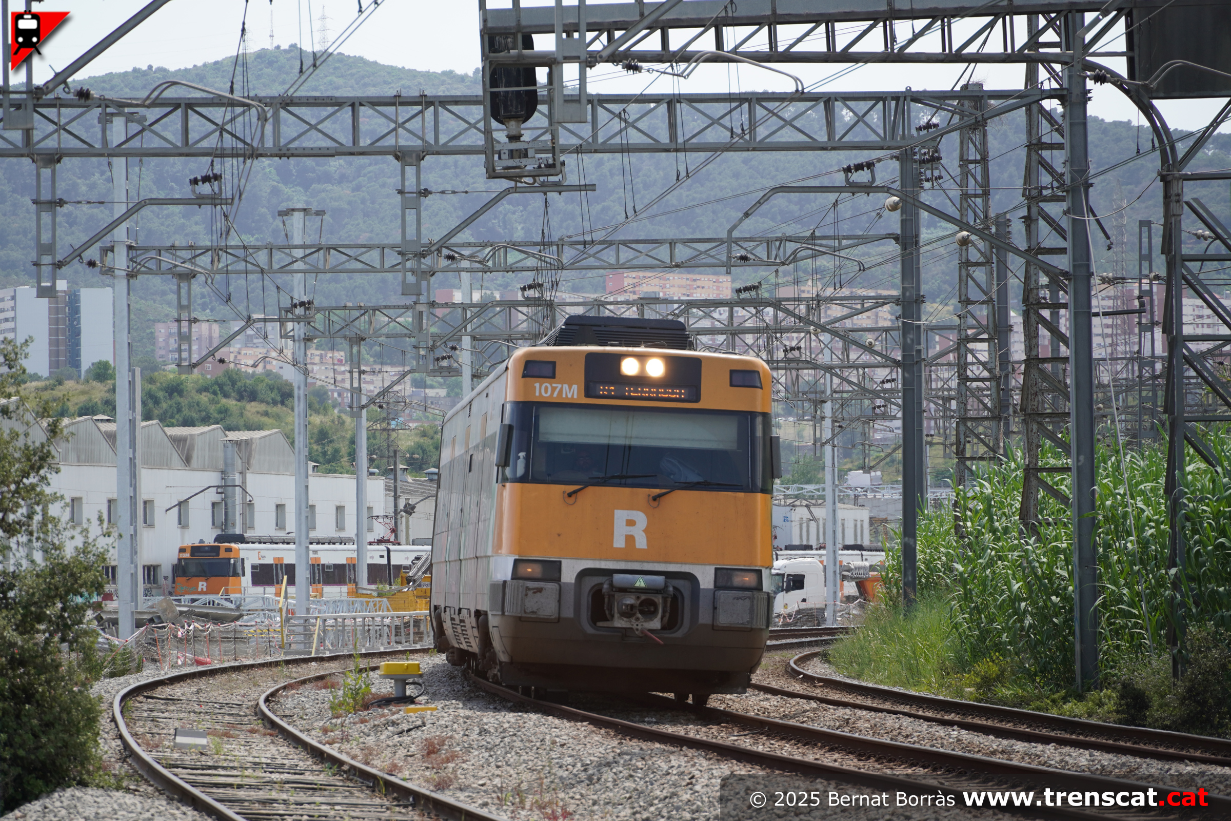 Unitat 447 amb un R4 a Terrassa Estació del Nord sortint de Montcada Bifurcació (juny 2025) |