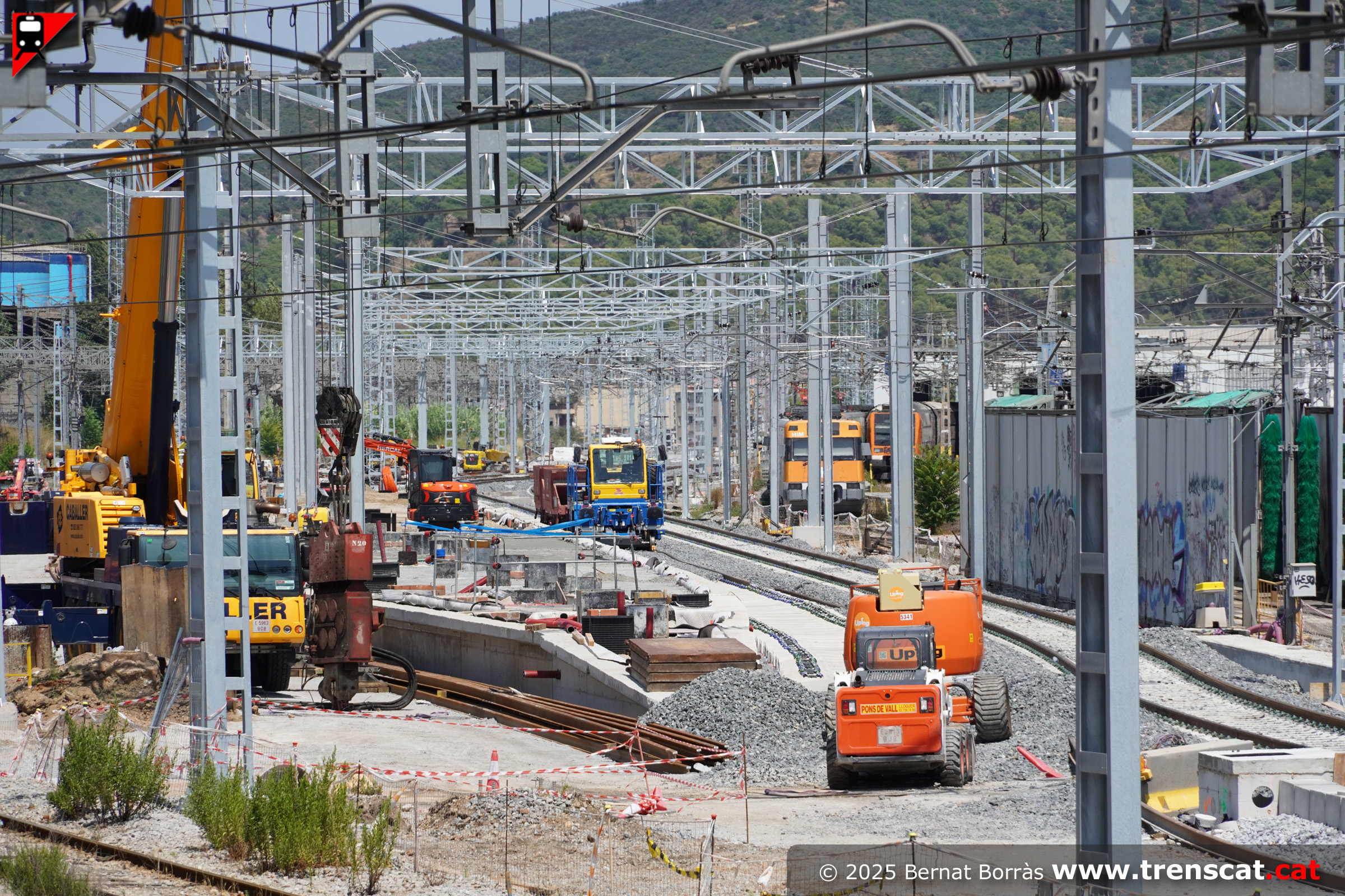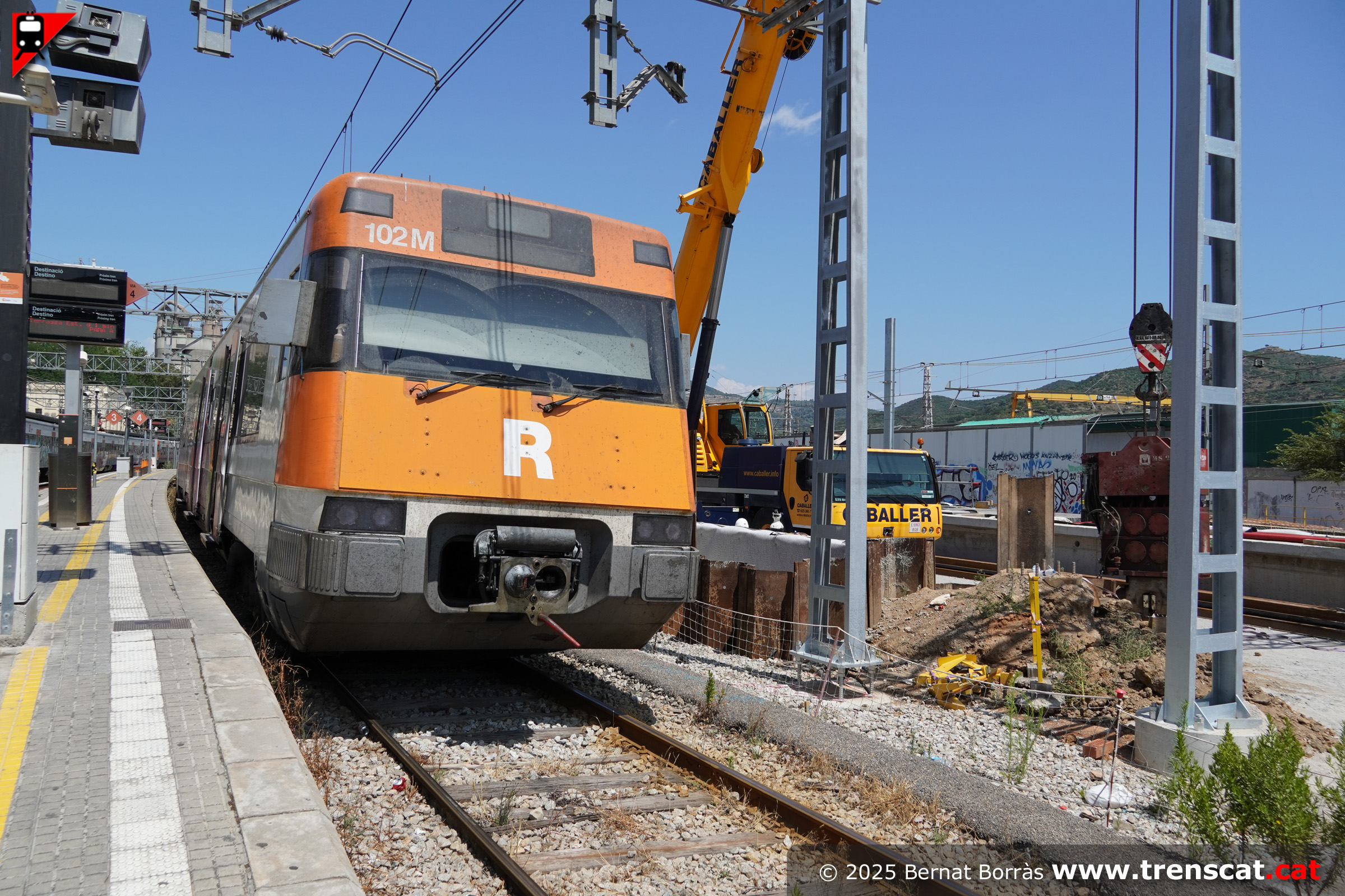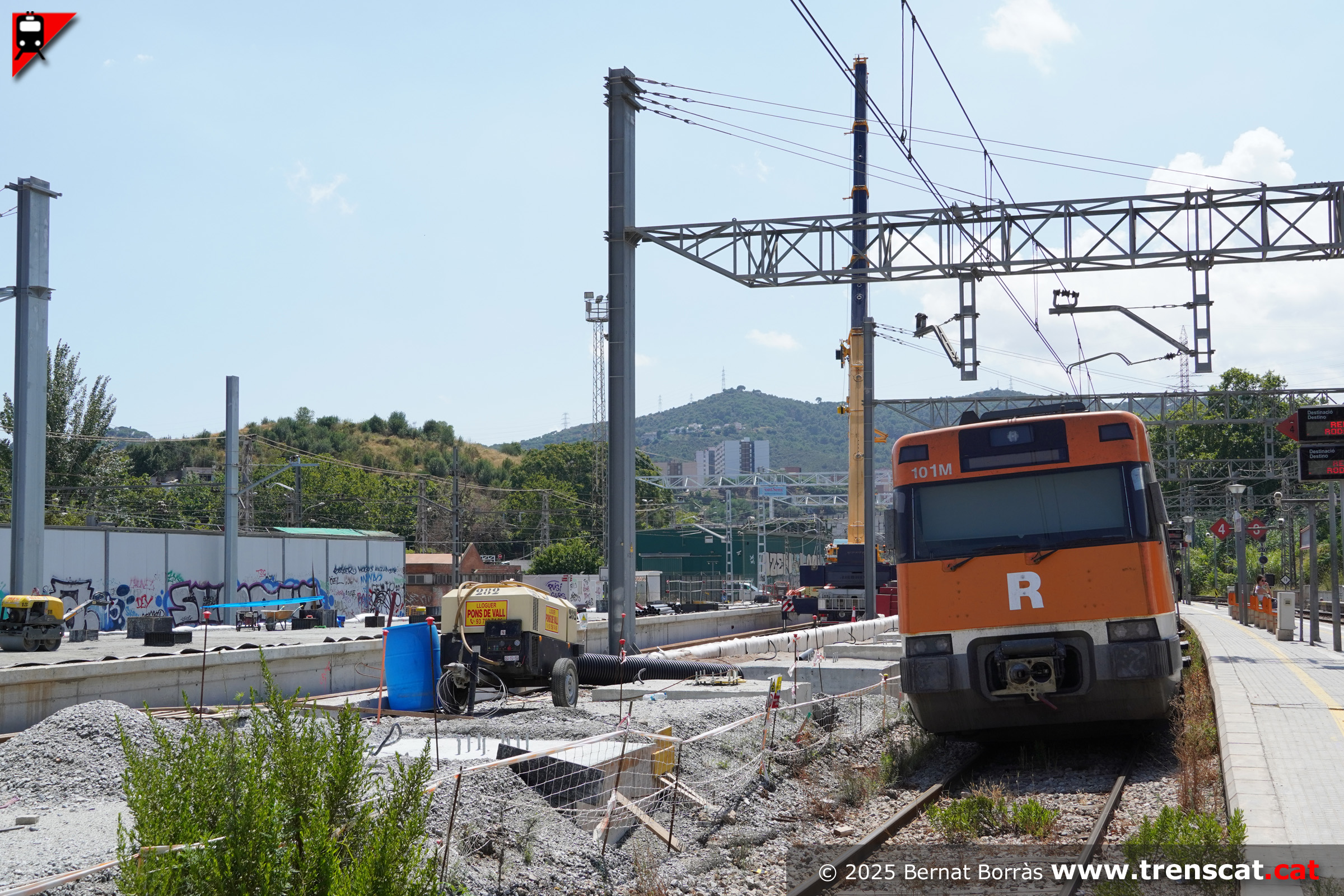 Vista de la unitat 447 i les obres del nou pas inferior entre andanes (juliol 2025) |