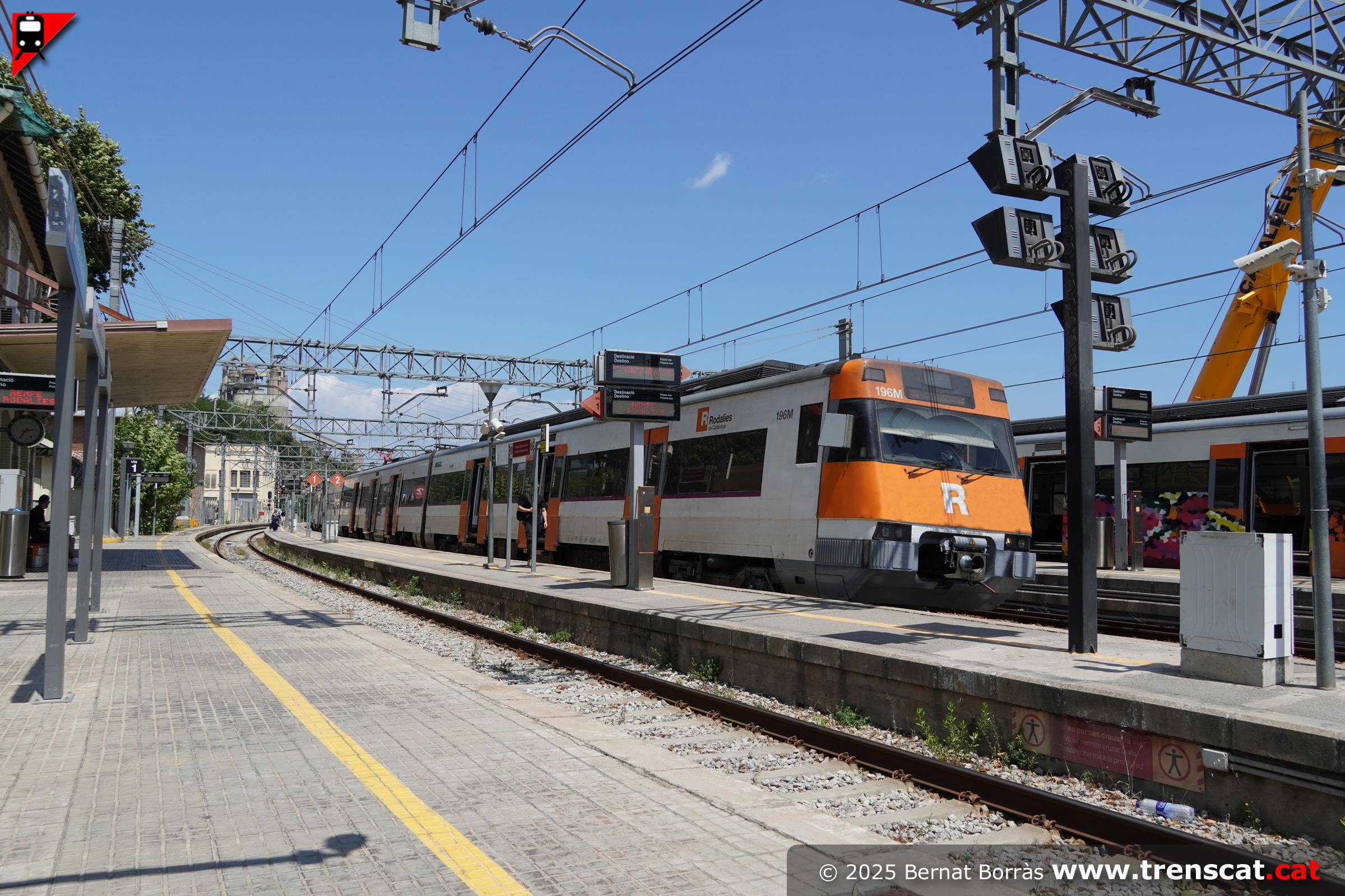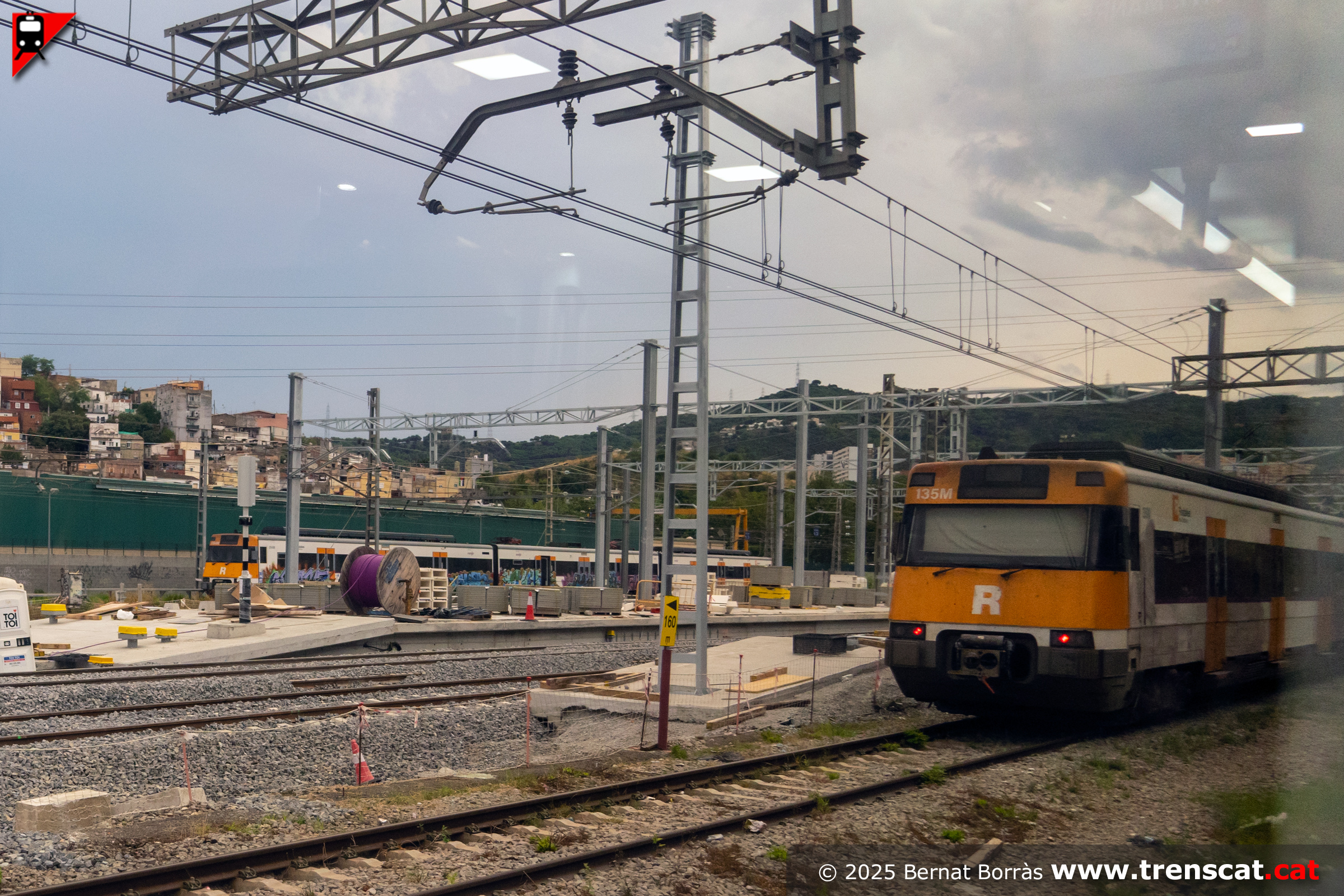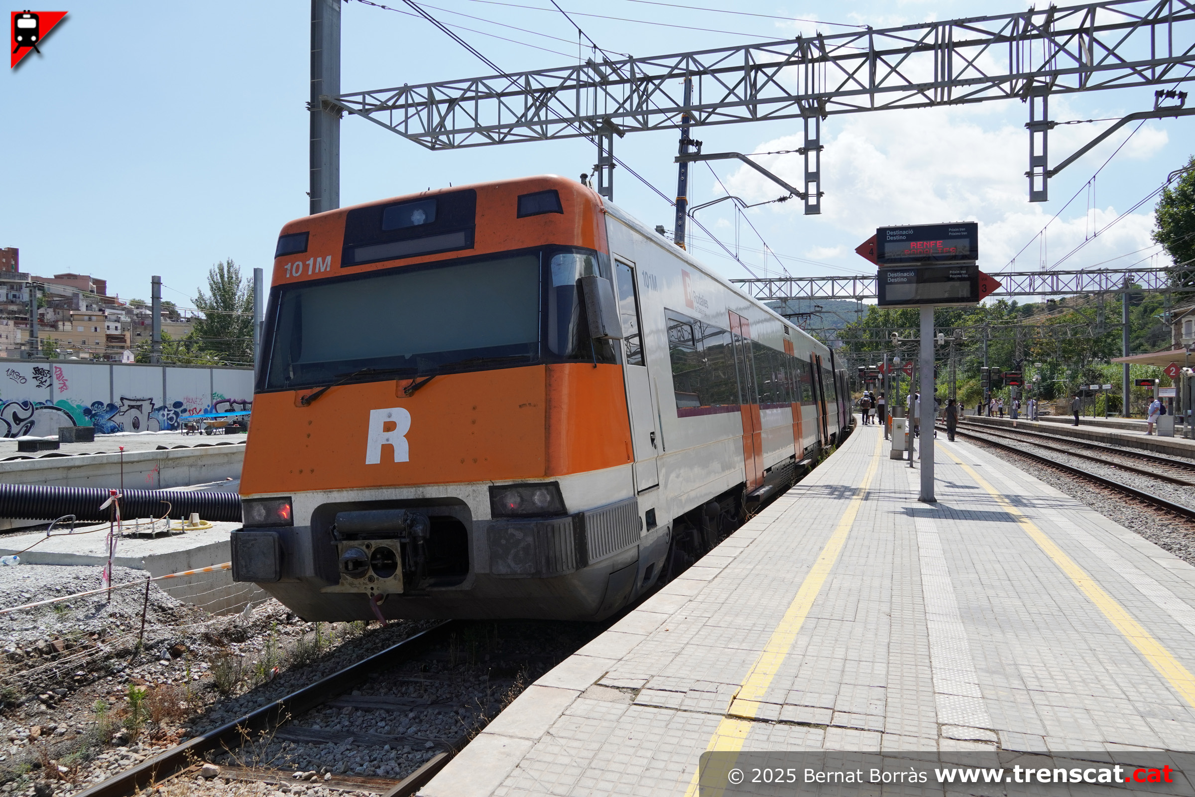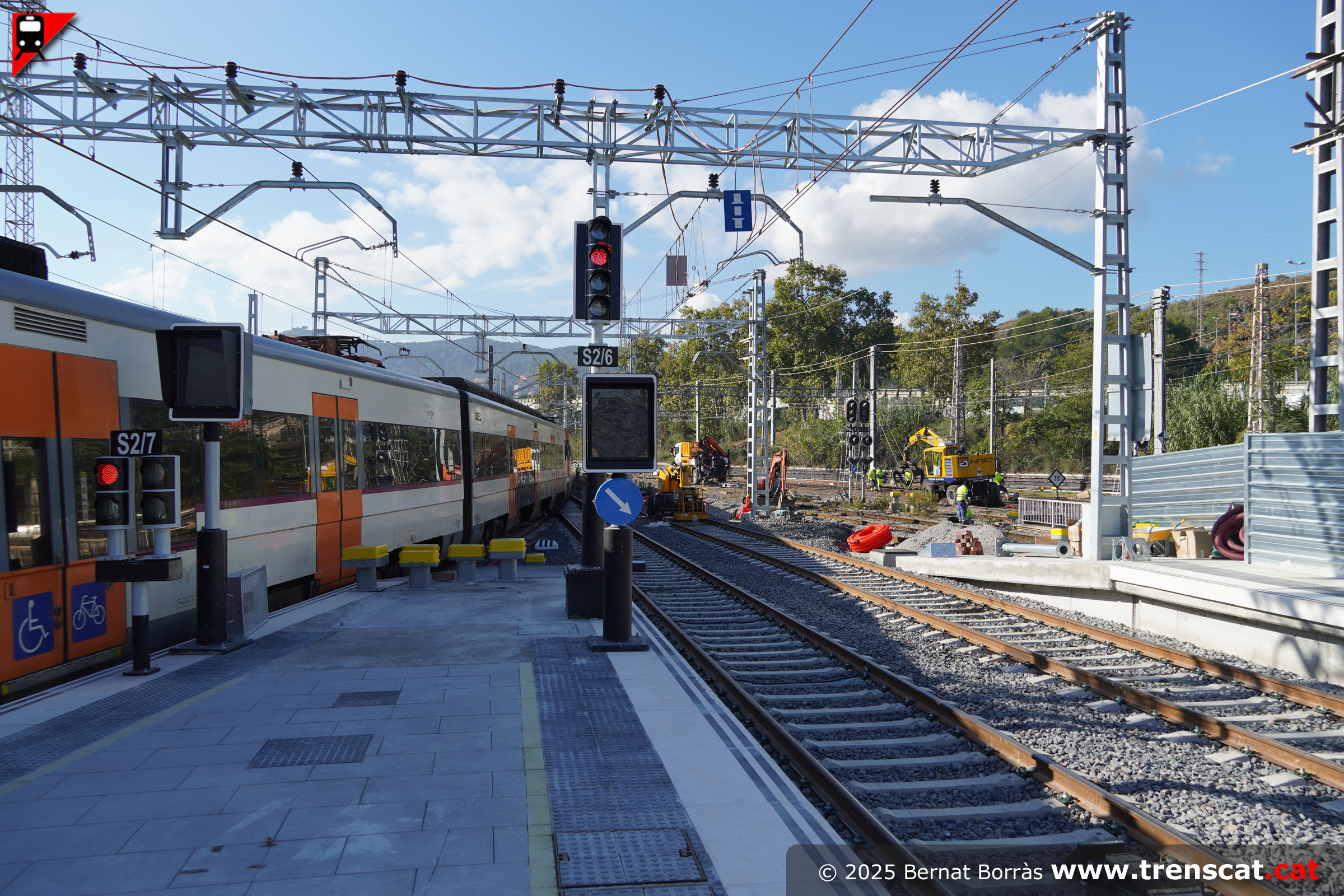 Vista de la unitat 447 i les obres del nou pas inferior entre andanes (juliol 2025) |