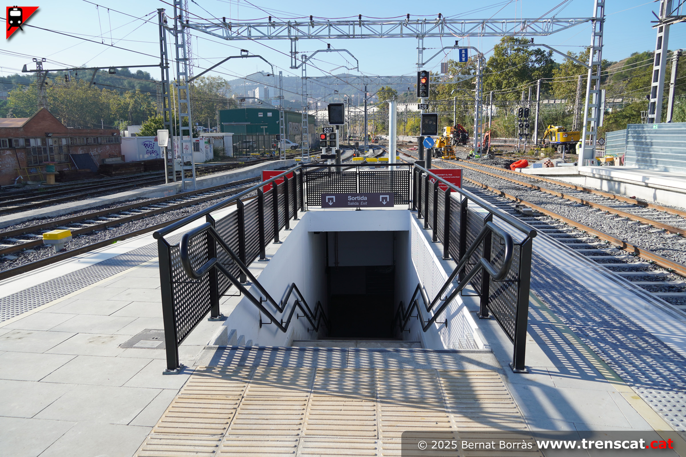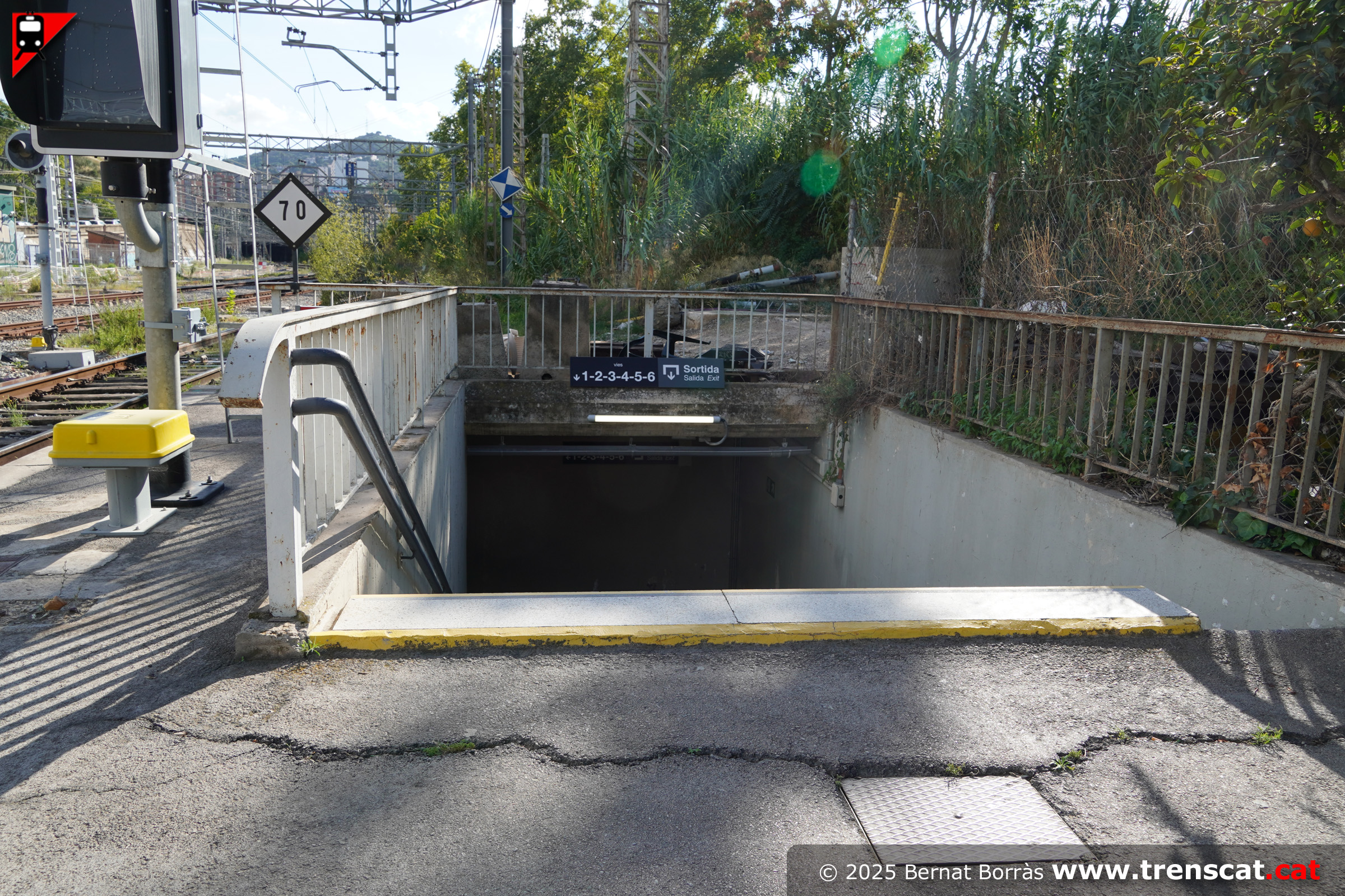 Vies costat Barcelona, amb l'accés al pas inferior des de l'andana de les vies 3-4 actuals (juliol 2025) |