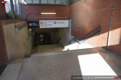 | L'edifici d'accés a Montcada Bifurcació enllaça directament amb el pas inferior entre andanes (setembre 2025) |