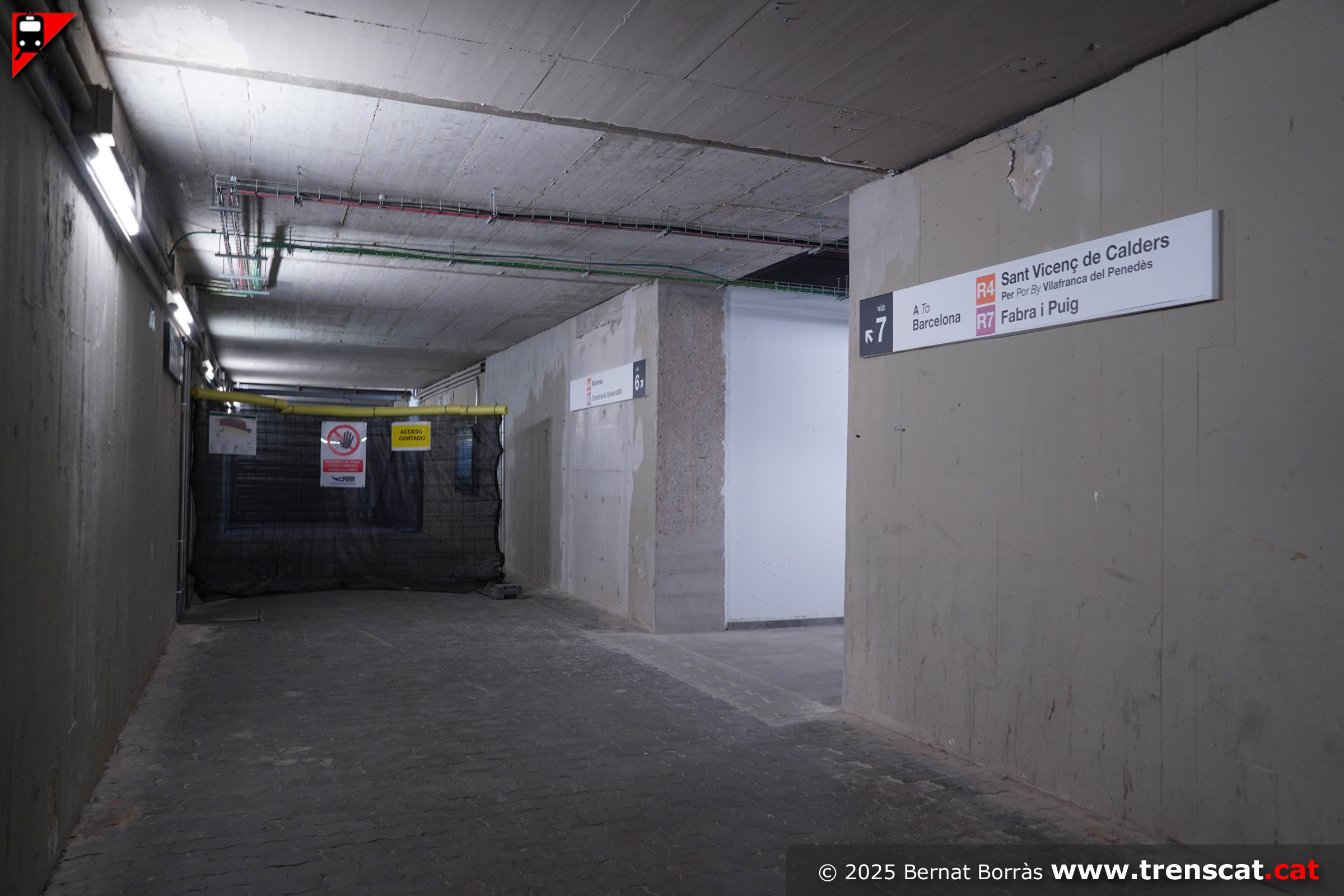 Pas inferior, amb l'accés a l'antiga andana de les vies 5-6 tancat. Recentment s'ha instal·lat una nova pantalla d'informació, tot i que aquest pas properament es tancarà (setembre 2025) |
