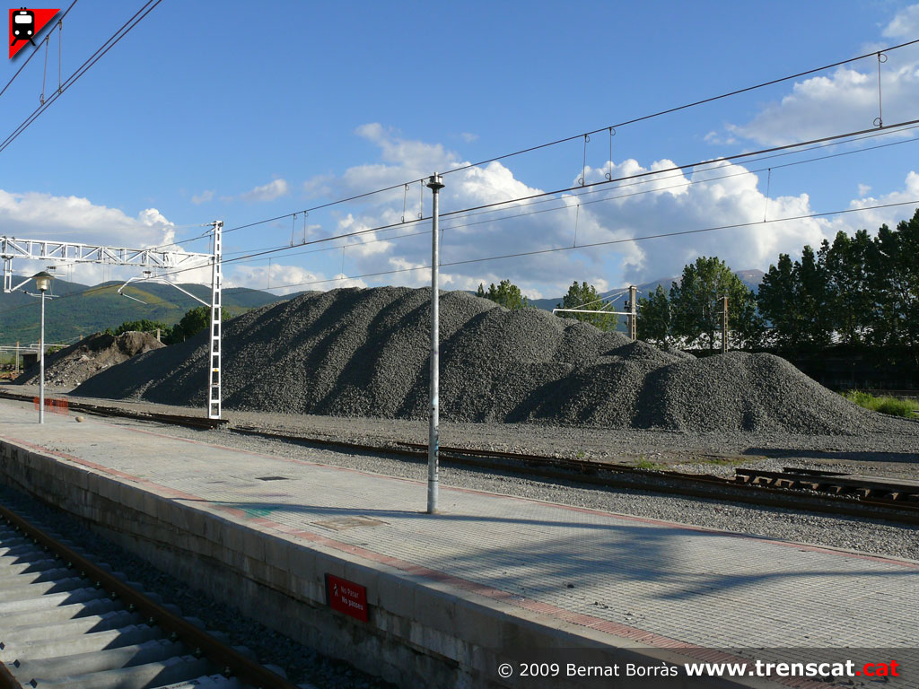 | Muntanya de balast per la renovació de la via des de La Molina (juny 2009) |