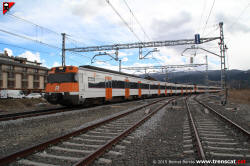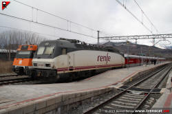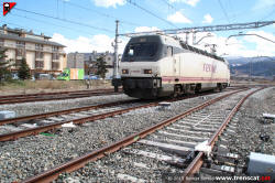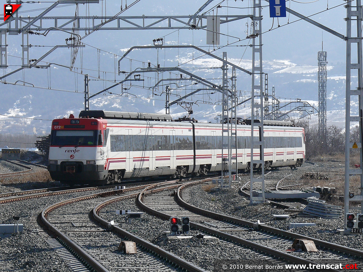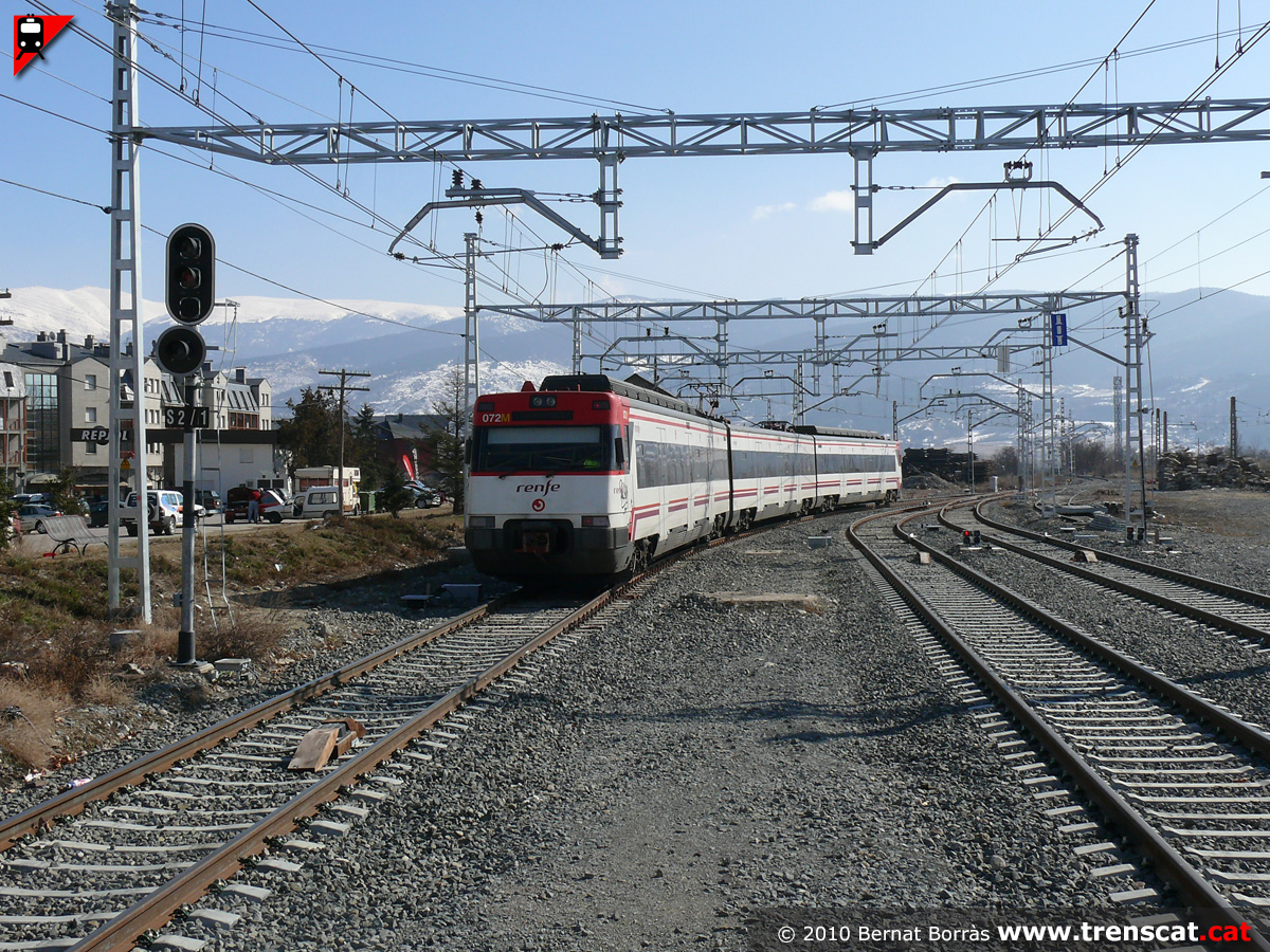 Una altra vista del tren entrant a Puigcerdà per la via 1 (febrer 2010) |