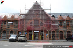 Edifici de viatgers de Puigcerdà. Vista parcial de la façana a la