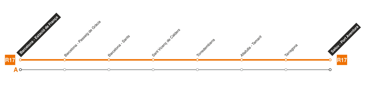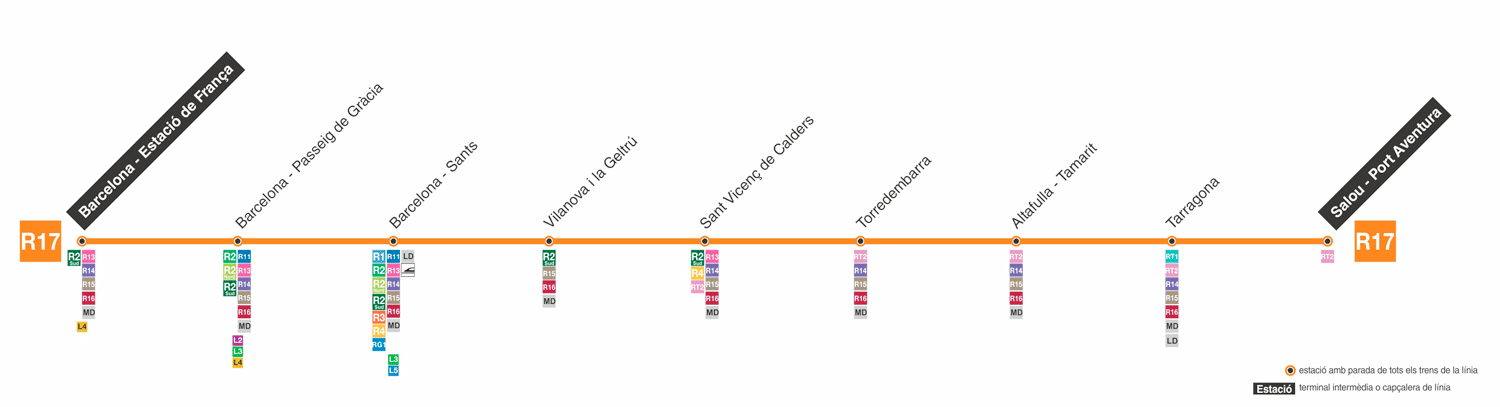 novembre de 2025. La línia R17 s'inicia a l'Estació de França de Barcelona i s'encamina