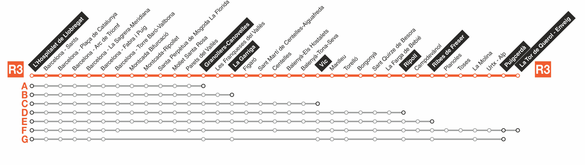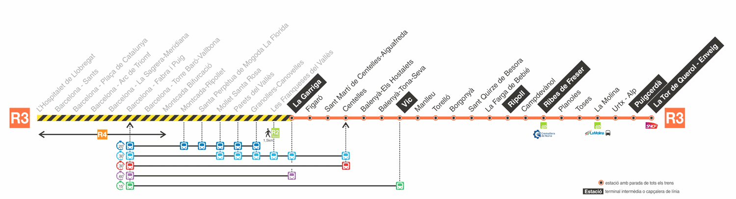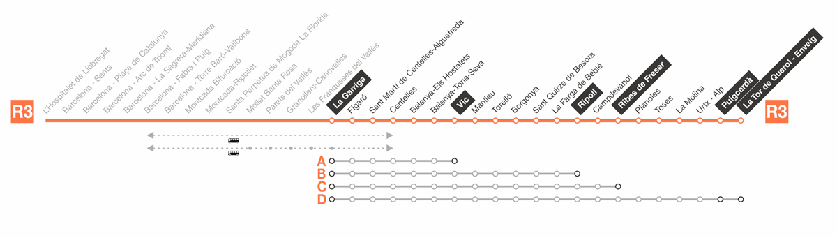 - Ribes - Puigcerdà: Dl-Dv 7 trens | Ds-Dg 6 trens