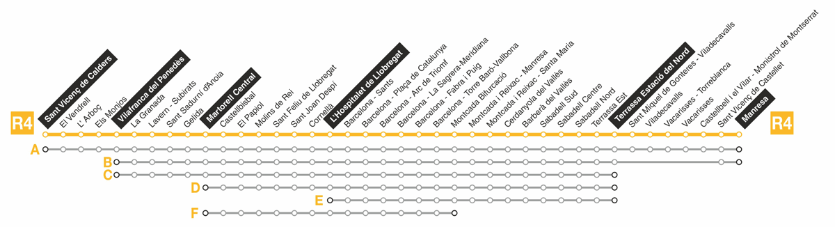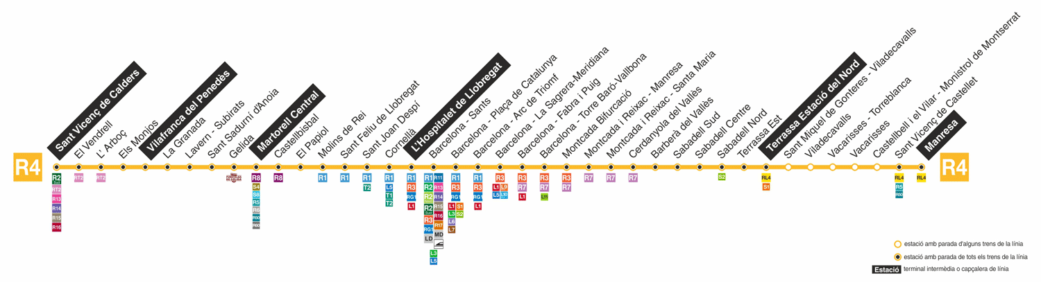 nord". La línia R4 segueix cap a Manresa, tenint