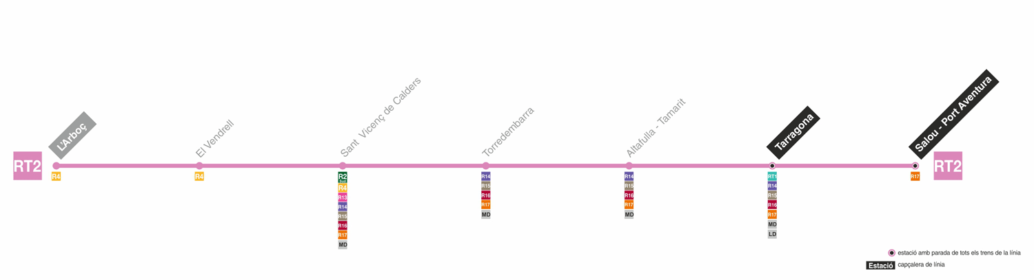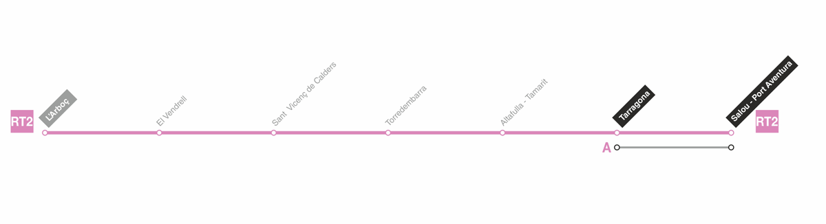 finalitzant trajecte a Salou-Port Aventura. La línia RT2 actua de reforç de les línies dels serveis