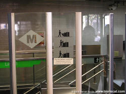 Detall de com passar correctament per les portes d'accés (maig 2005) |