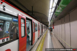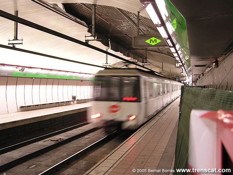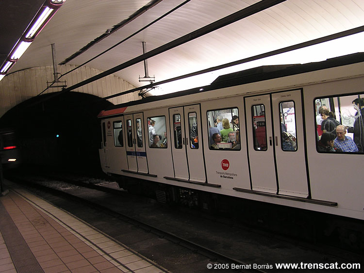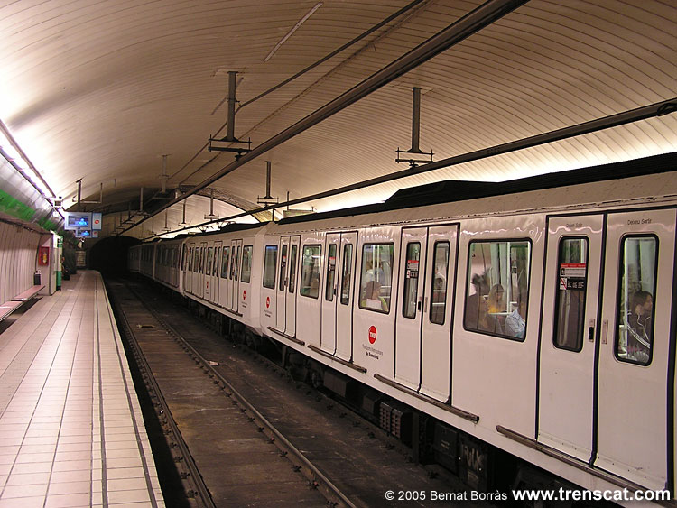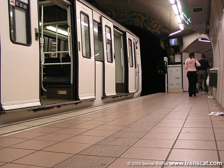 Unitat 3000 amb les portes obertes estacionada a la via 1 (maig 2005) |