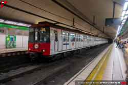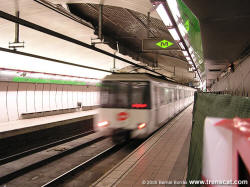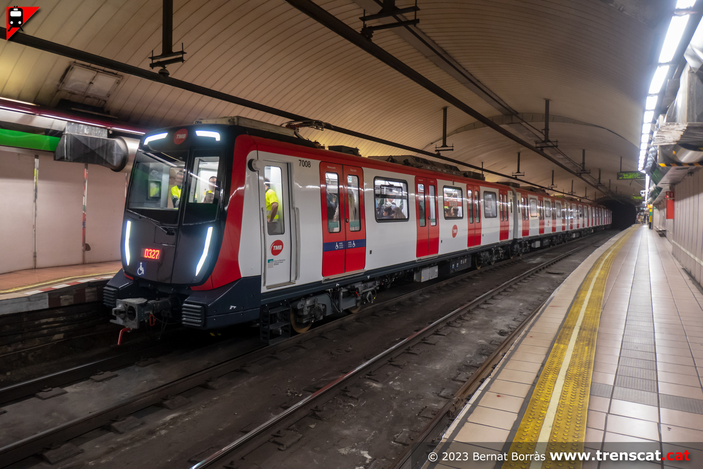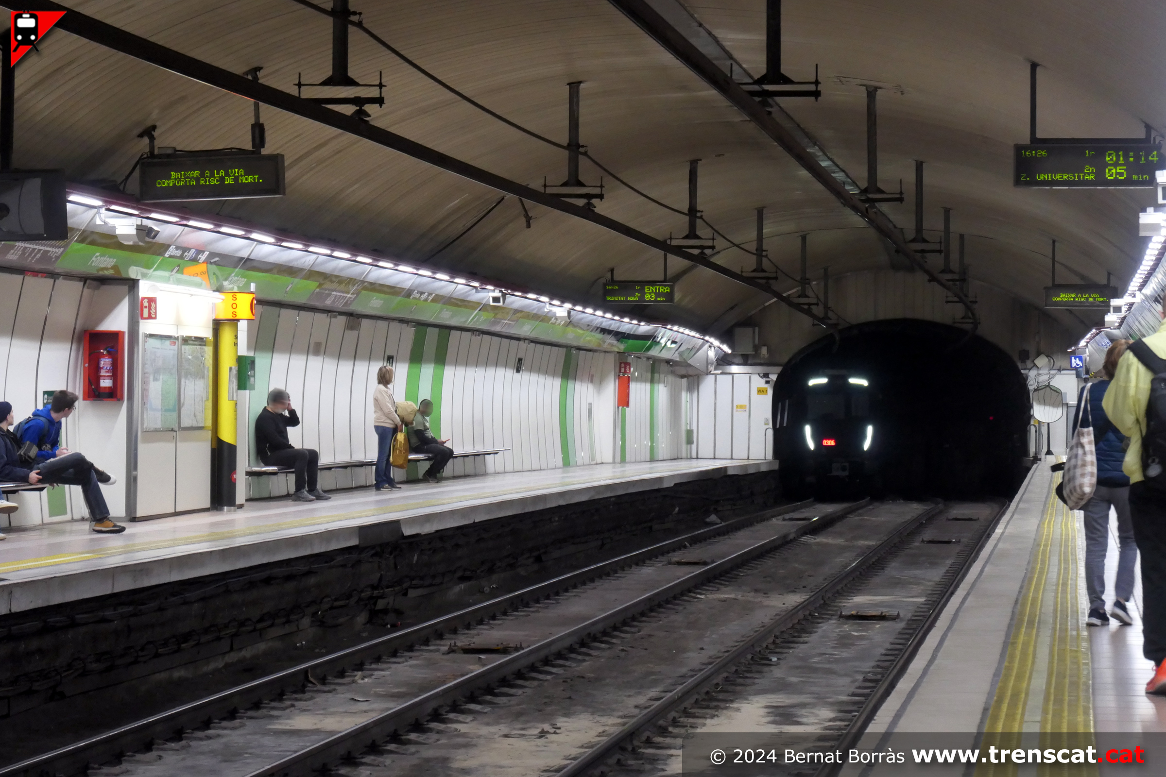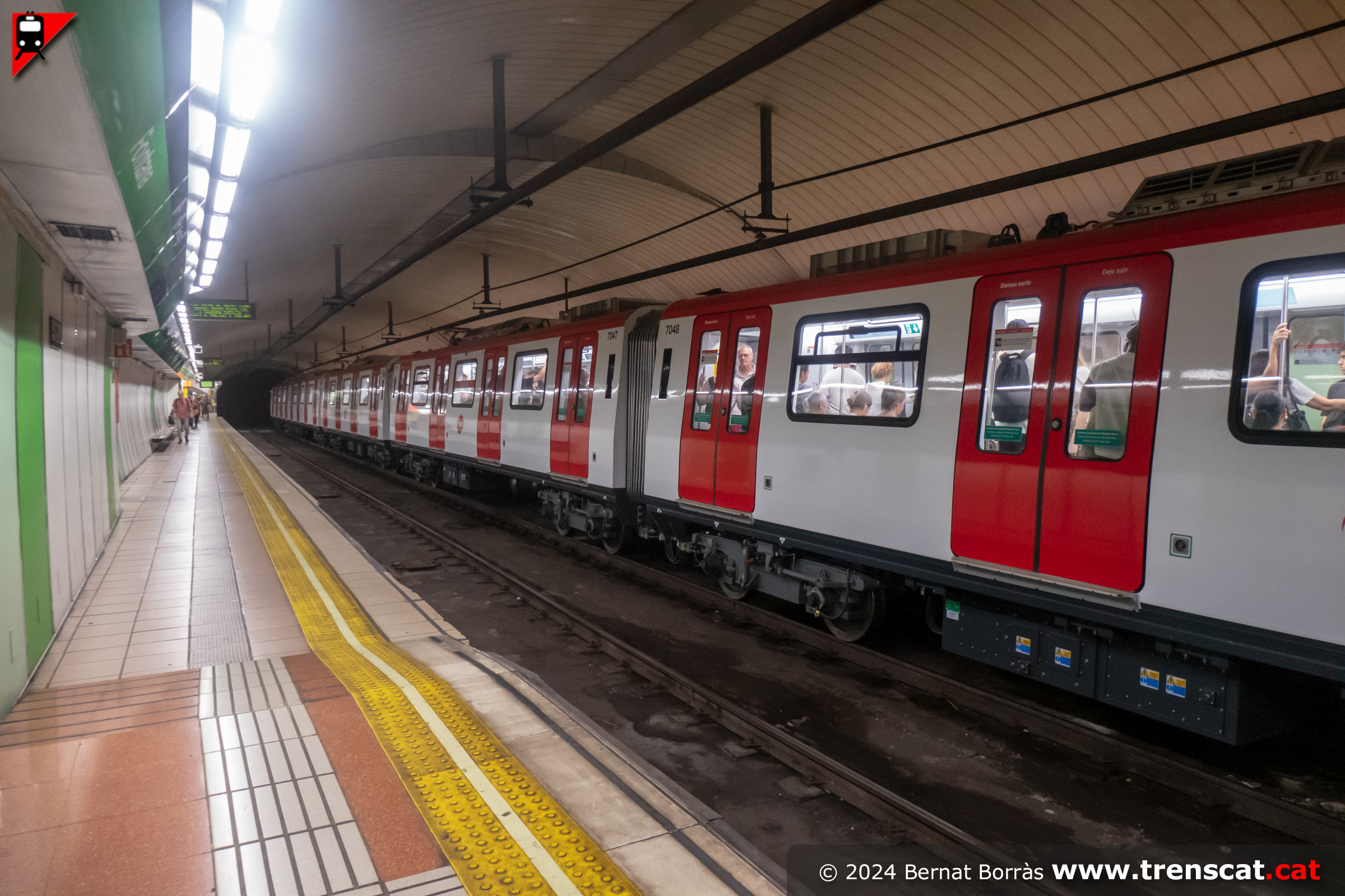 Unitat sèrie 7000 pujant pel túnel sota el carrer Gran de Gràcia des de