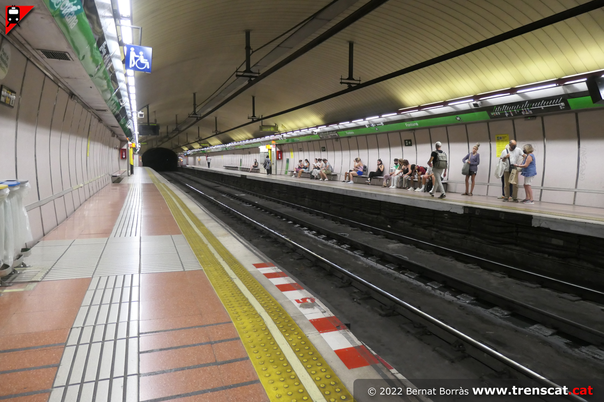 Vista general de l'andana de la via 1, mirant cap a Diagonal (juliol