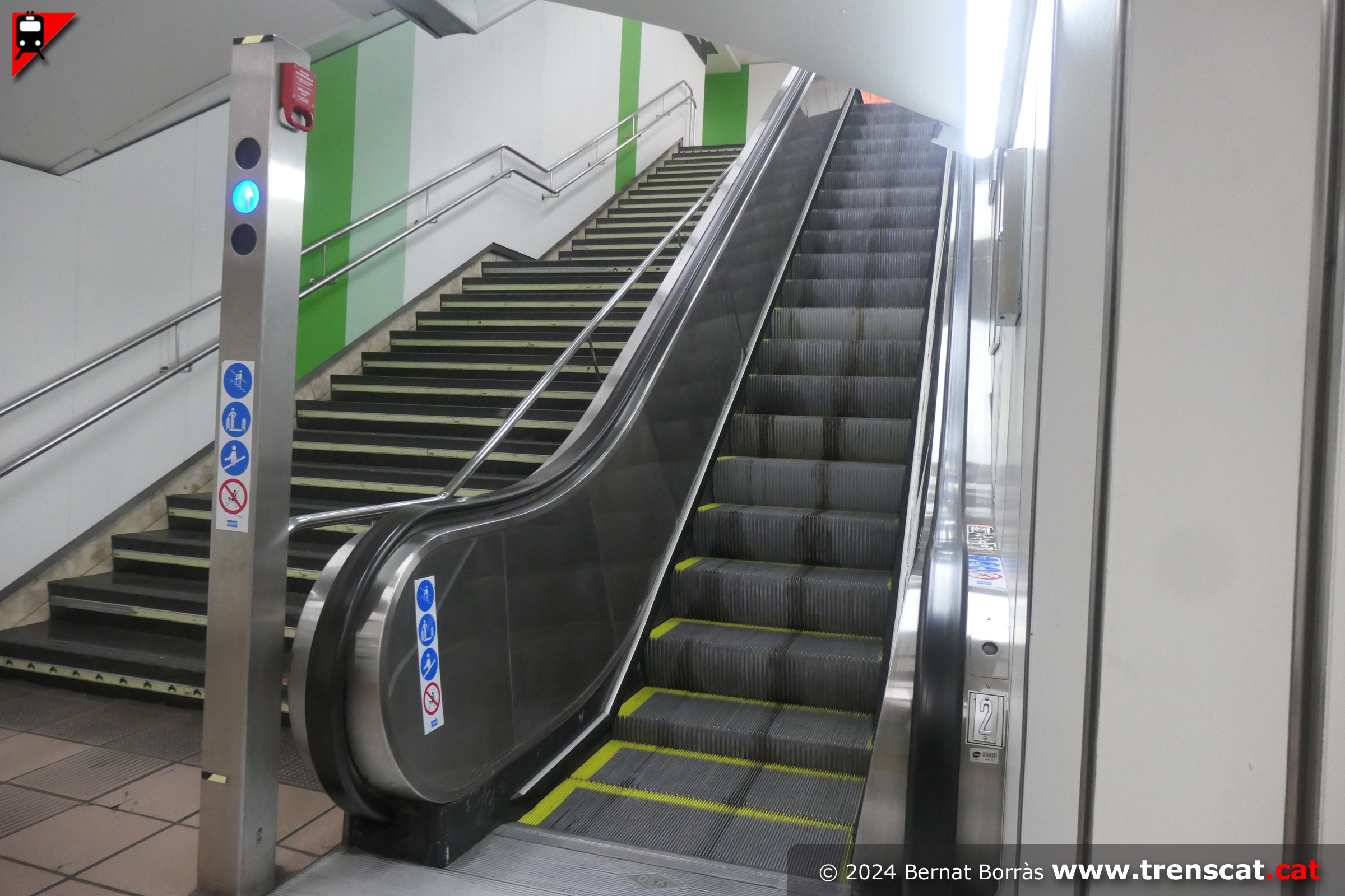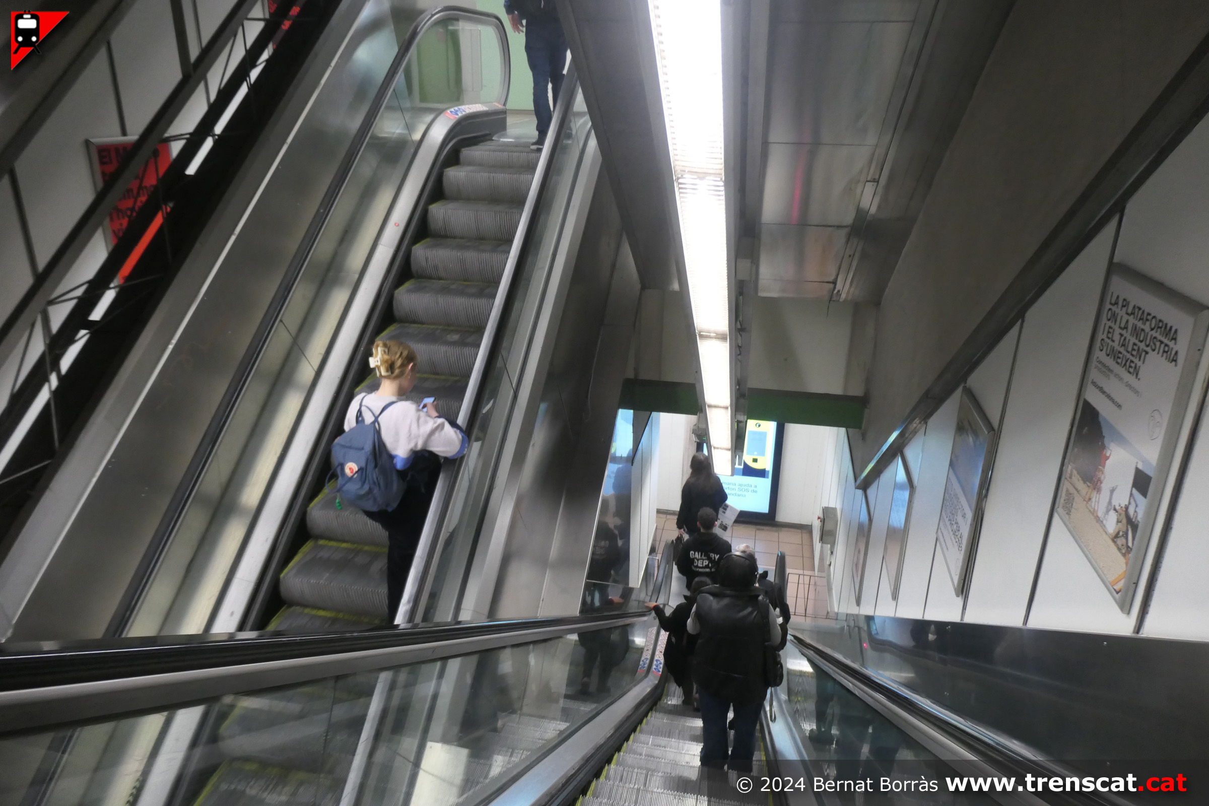 Escala mecànica, escala fixa i ascensor per baixar a l'andana de la via