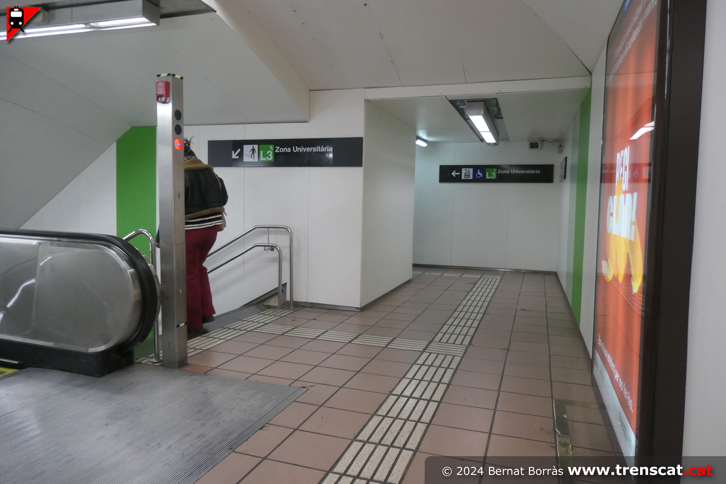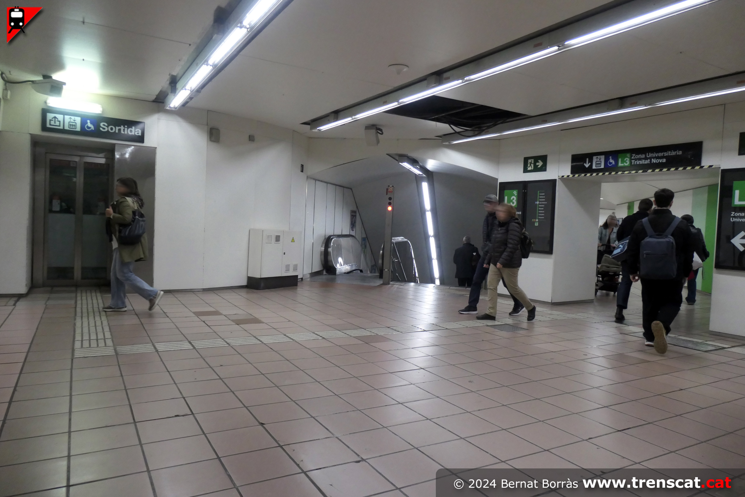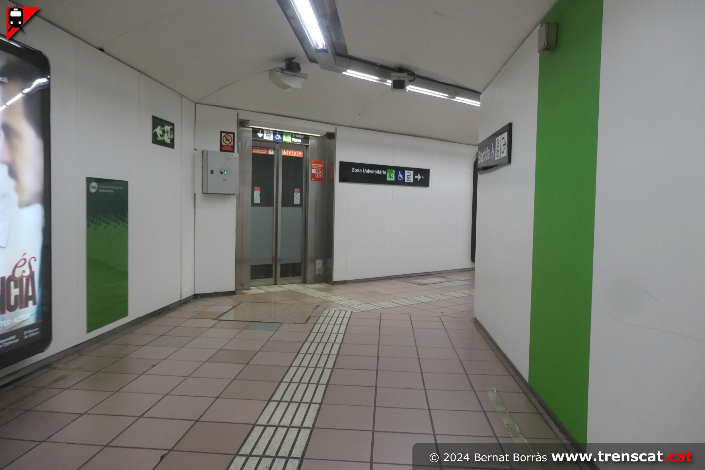 Universitària, i ascensor que baixa a la via 1 (novembre 2024) |