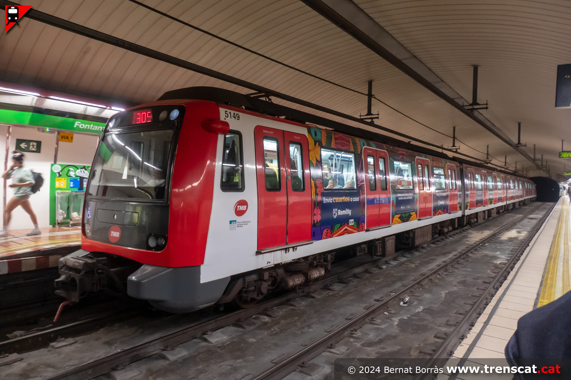 Tren de la sèrie 3000 entrant a Fontana procedent de Trinitat Nova