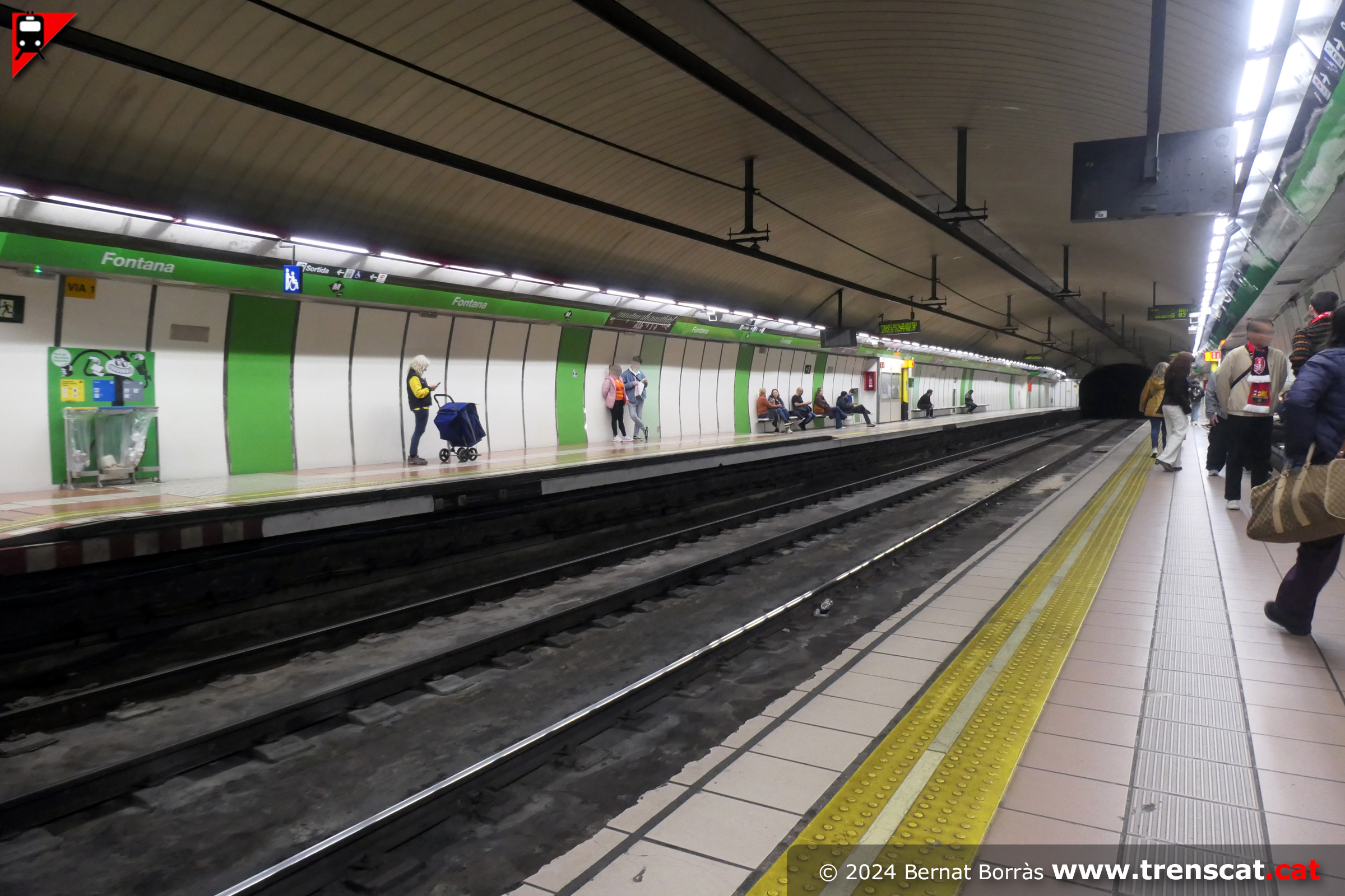 Vista general de l'estació de Fontana des de la via 2, costat Lesseps