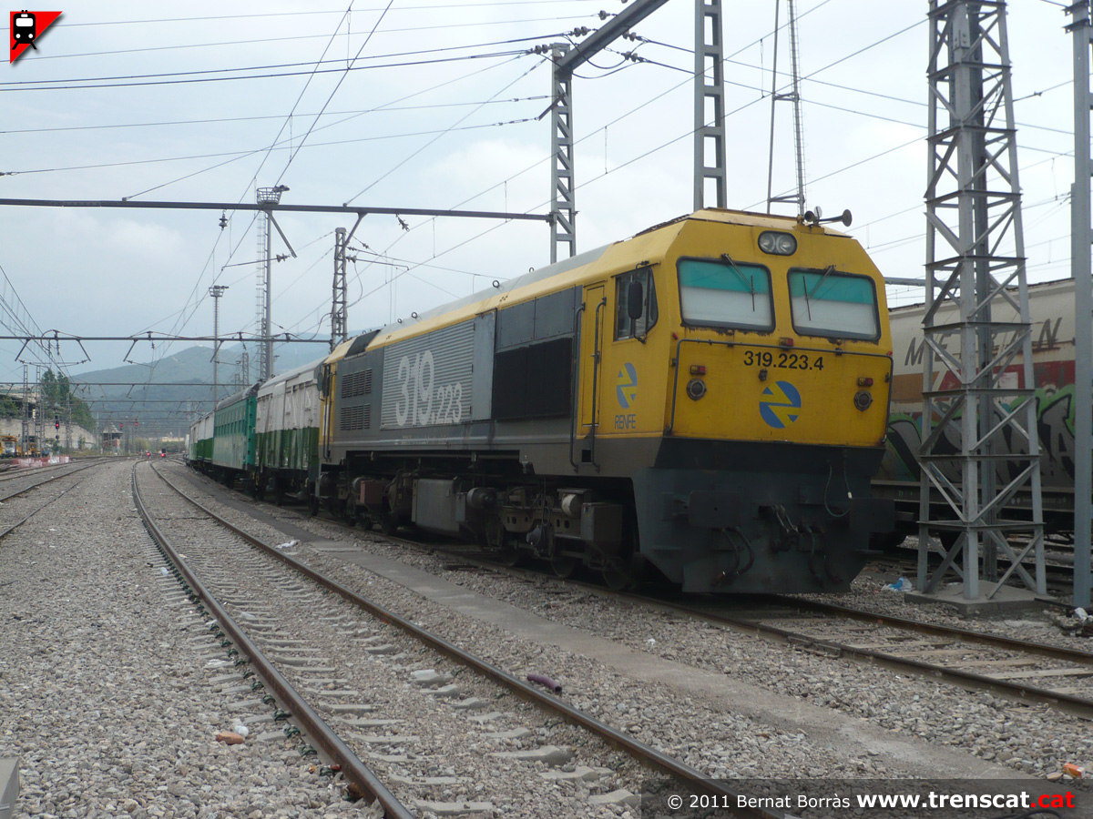 La 319.223 amb l'herbicida de Sintra estacionat a Montcada Bifurcació (abril 2011) |